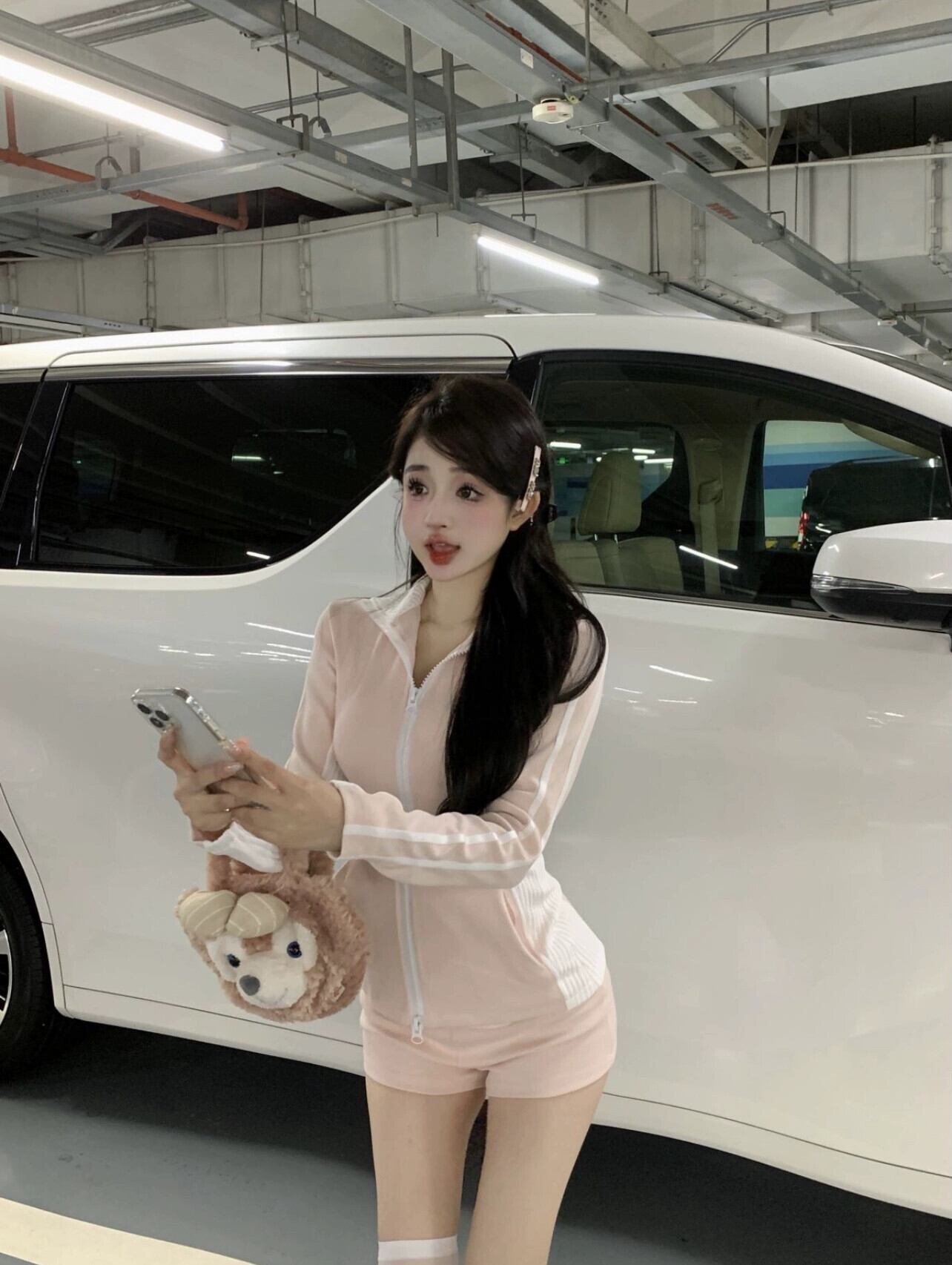 色:ピンクのジャケット,ピンクのショートパンツ