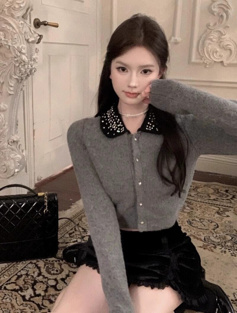 Xiaoxiangfeng グレー ニット カーディガン女性秋と冬の金持ちの娘のショート ボトム トップとスリムなセーターを接合しました。 オータム 秋物 ウィンター 冬物 bstraw40910659812 | beaute25