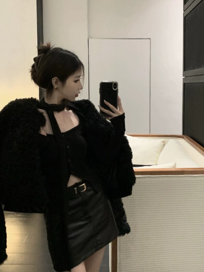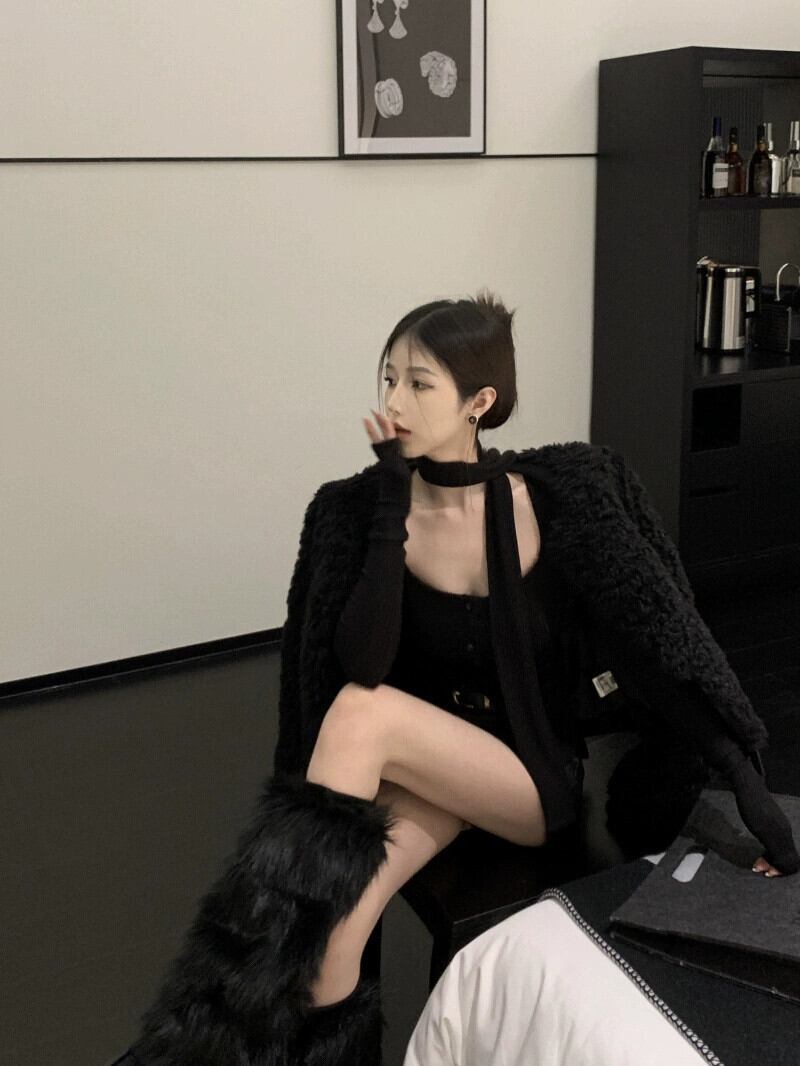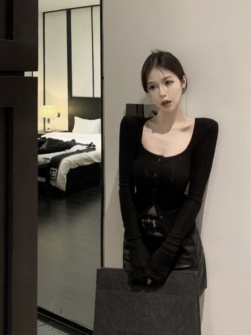 黒スクエアネックニットカーディガン女性 2024 春の新スリムウエストシックなボトリングシャツ長袖インナートップ ロング ブラック スプリング 春物 スクウェア bstraw74635419049 | beaute25