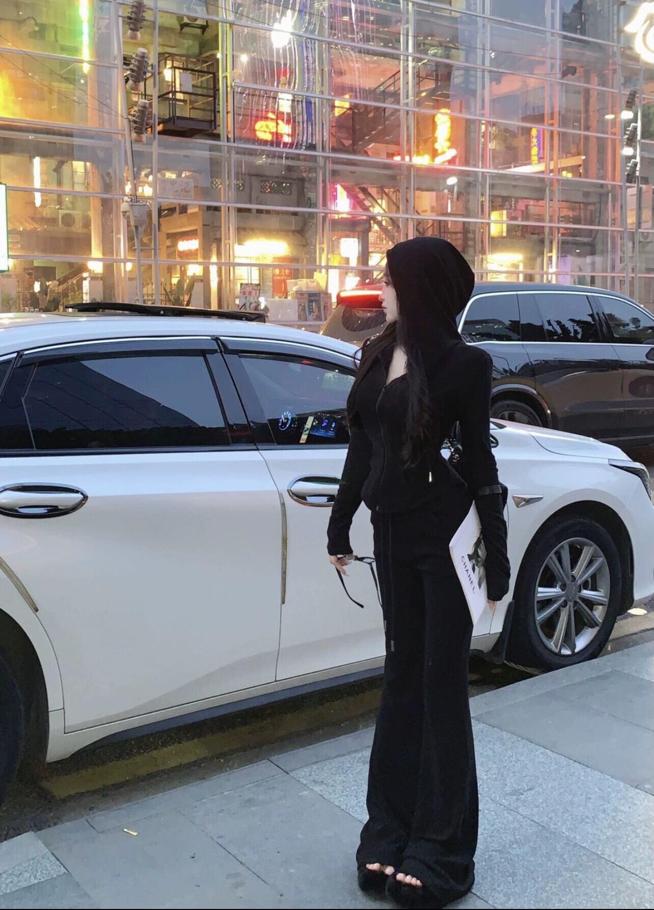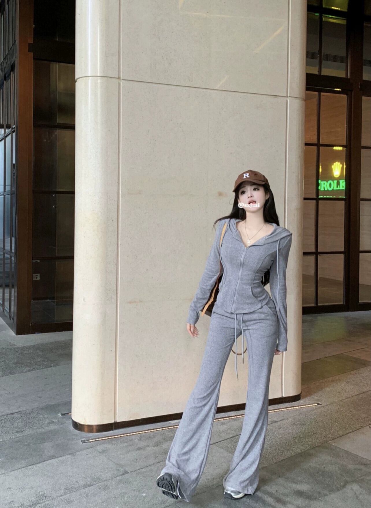 春先カジュアルスポーツスーツレディース長袖フード付きスウェットシャツカーディガンジャケットわずかにフレア床長ズボン黒 2 点セット ロング レッド ブラック スプリング 春物 bstraw30459685612 | beaute25