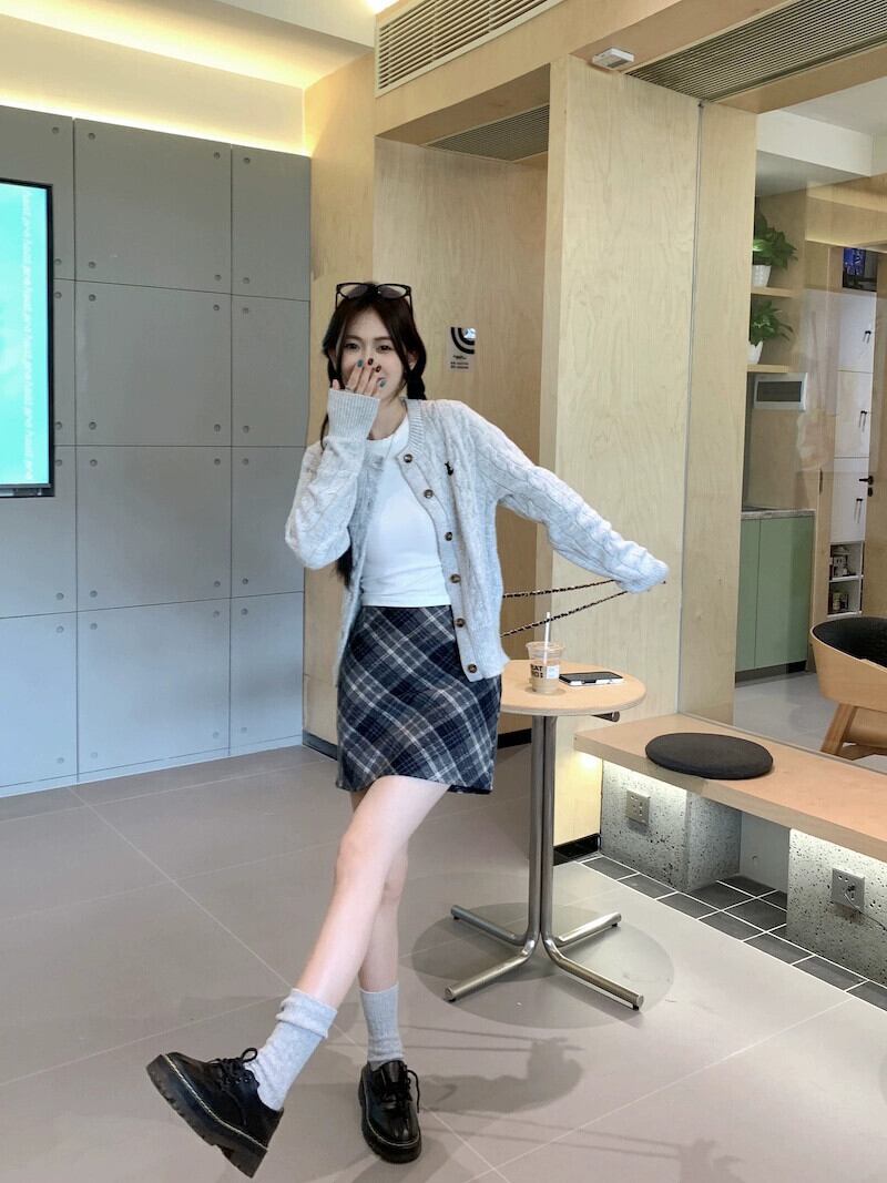 シックな甘辛スーツツイストニットカーディガンショートコートレディースベストトップ秋冬チェック柄スカート3点セット 大人ガーリー スウィート キュート カジュアル オータム 秋物 ウィンター 冬物 bstraw67236555951 | beaute25