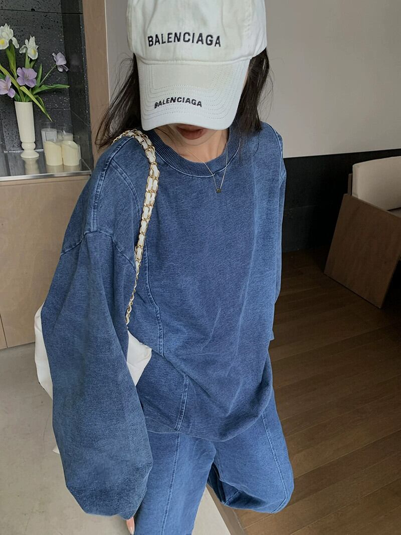 -エンドスーツ デニムカラー 長袖トレーナー レディース 2024年初春新作 ワイドレッグ カジュアルパンツ ズボン 2点セット ロング スプリング 春物 bstraw19147758205 | beaute25