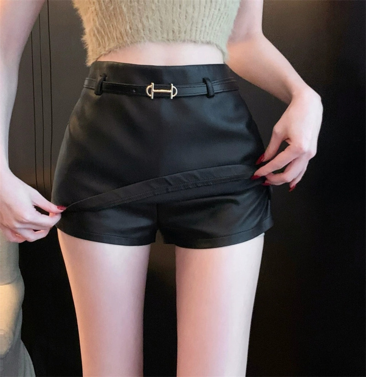 黒 pu レザー キュロット カジュアル ショーツ レディース 春ハイウエスト タイト ストレート パンツ セクシーな a ライン ヒップカバー パンツ ハイウェスト ブラック スプリング 春物 ブルマー Aライン bstraw78813722161 | beaute25