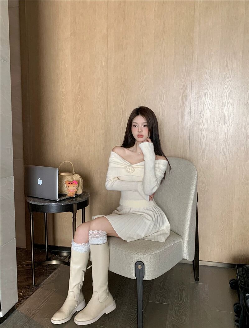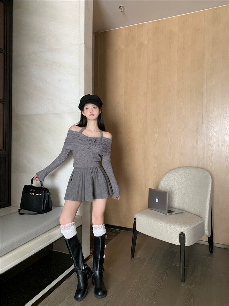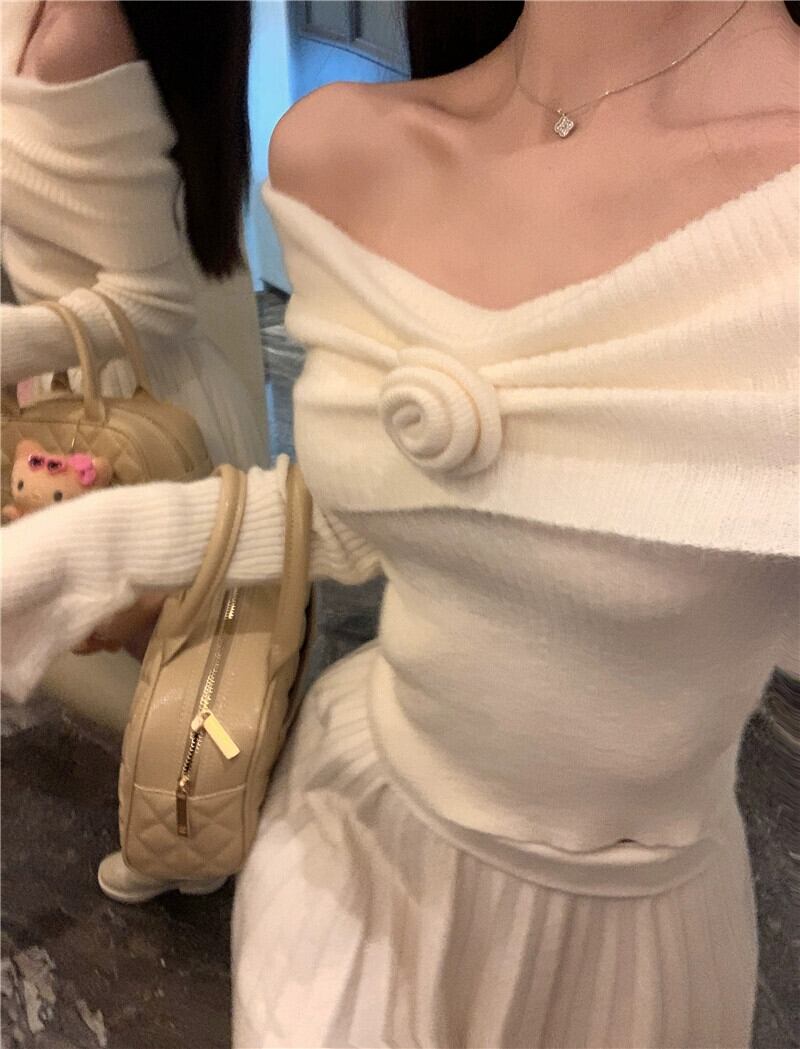 立体花長袖ホルターネックセーター女性春ワンショルダースリムショートボトムシャツ純粋な欲望インナートップ ロング スプリング 春物 ピュア フラワーデザイン bstraw11456011801 | beaute25