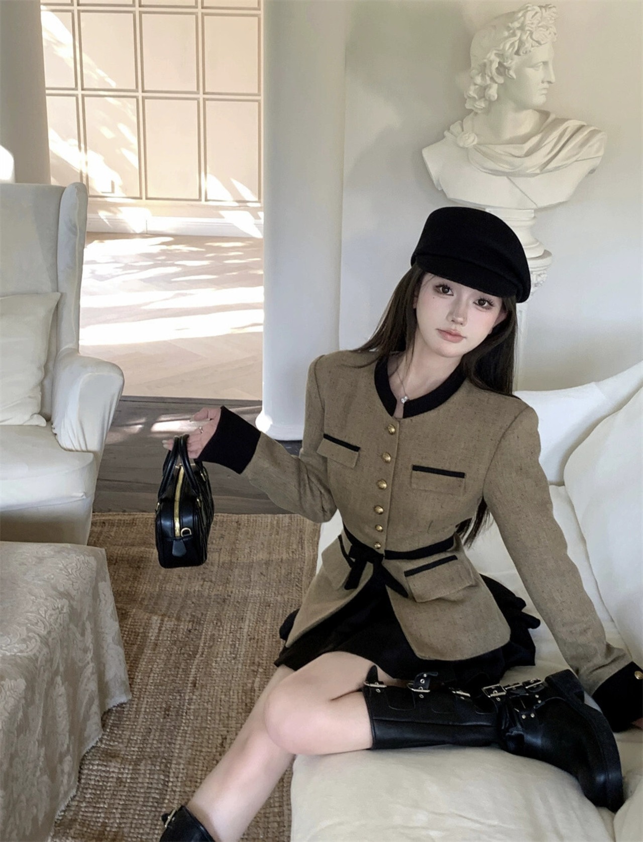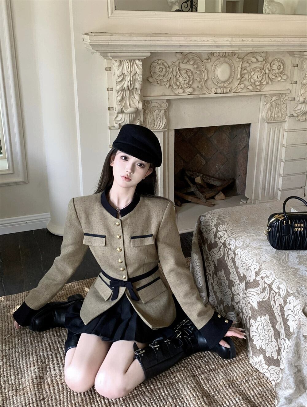 Xiaoxiangfeng 対照的なカラースタンドアップカラーウールコート女性の春と秋 2024 新しいスタイルの小さなハイエンド気質ウエストトップ スプリング 春物 オータム 秋物 bstraw10991604449 | beaute25
