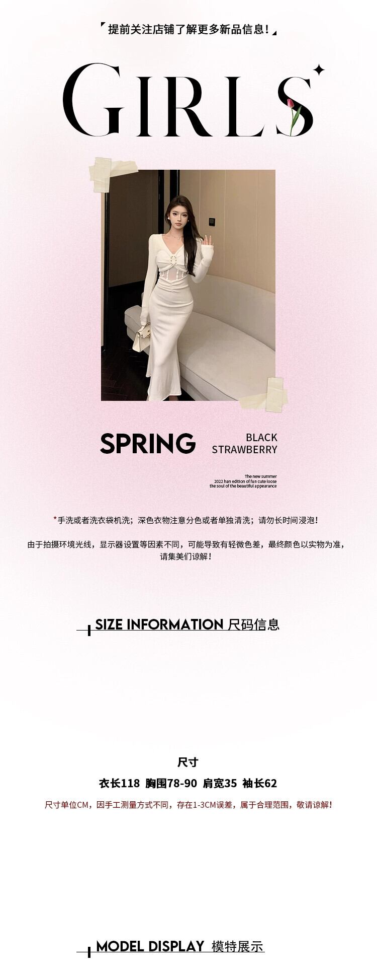 Pure Desire ロイヤルシスタースタイル V ネック長袖ドレス女性の春フィッシュボーンウエストスプライシングフィッシュテールスカート白ヒップカバーロングスカート ホワイト スプリング 春物 Vネック bstraw86638612405 | beaute25