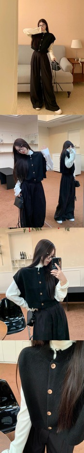 色:グレーのベスト,ホワイトボトミングシャツ,グレーパンツ,黒のベスト,黒いズボン