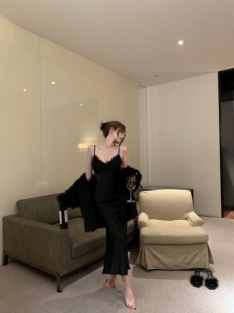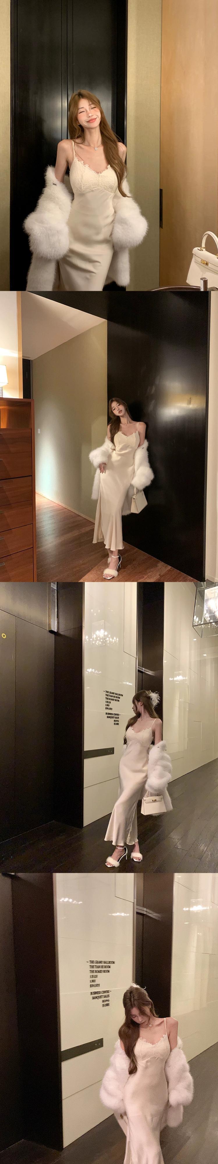 秋と冬のレースサスペンダードレスレディース、ウエストを締める高級サテンドレス、ロングスカート、ヒップハグフィッシュテールスカート オータム 秋物 ウィンター 冬物 bstraw94067298168 | beaute25