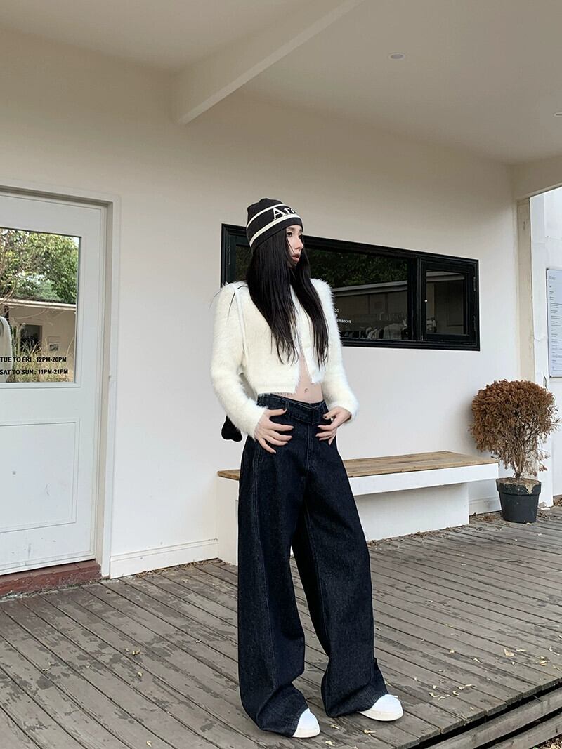 レトロブルージーンズレディーススプリングベルトローウエストドレープストレートパンツルーズ多用途ワイドレッグ床拭きパンツ 春物 ハーネス ワイドパンツ bstraw53419847837 | beaute25