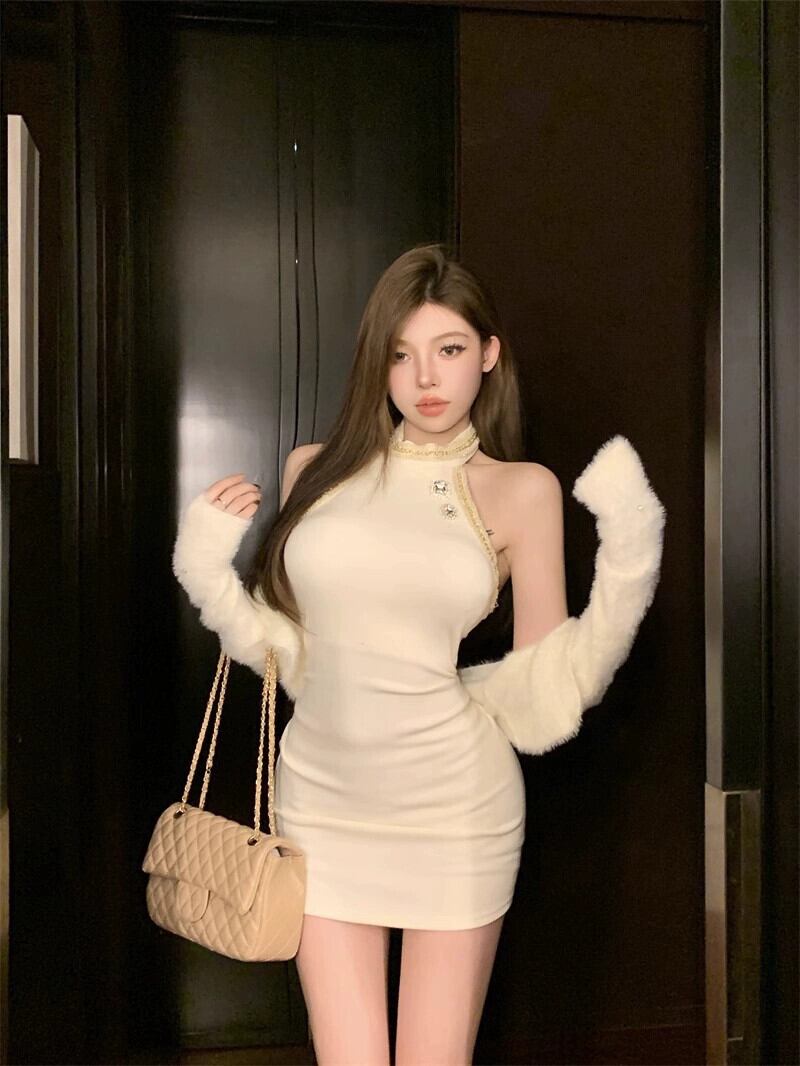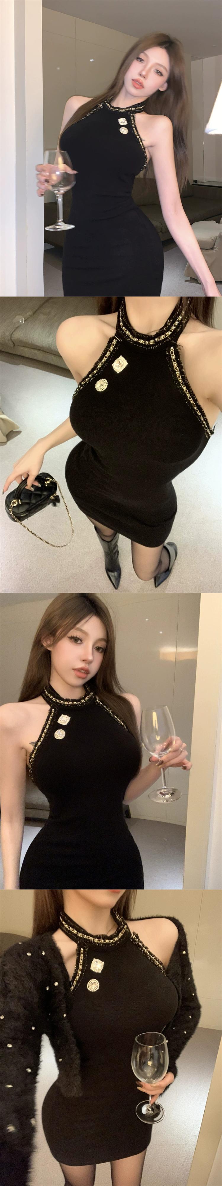 重工業チェーンラインストーンホルターネックドレス女性の春エレガントな女性のスカートセクシーなウエストタイトヒップハグショートスカート スプリング 春物 bstraw65970073300 | beaute25