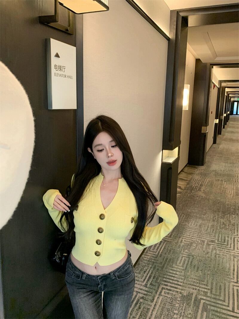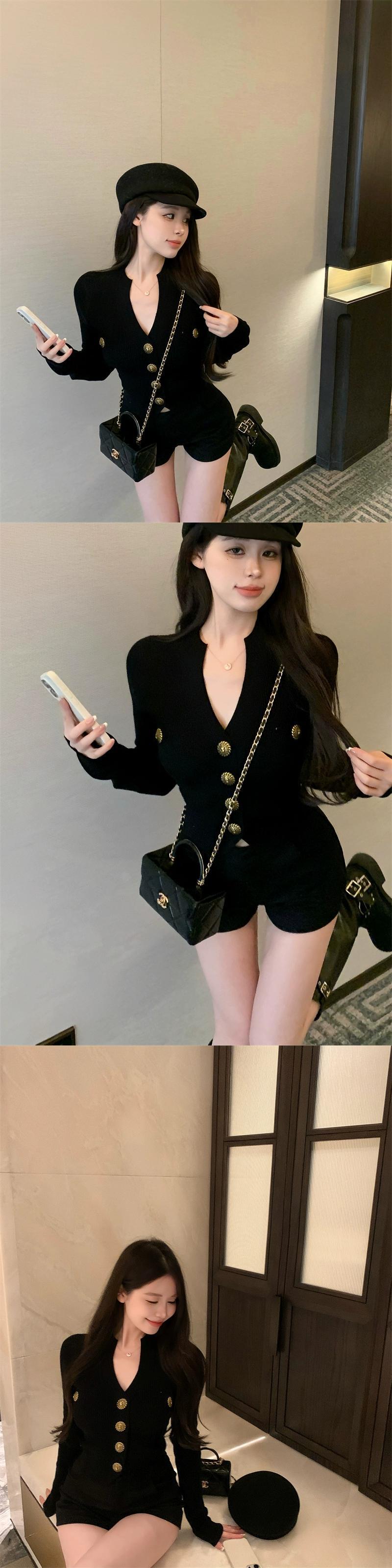 ブラック V ネック メタル バックル ニット カーディガン レディース 春のフレグランス スタイル セーター スリム フィット インナー 長袖 トップ ロング スプリング 春物 Vネック bstraw33417003052 | beaute25