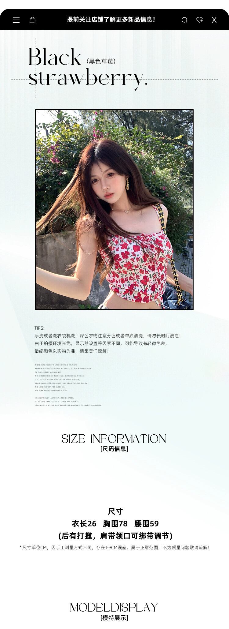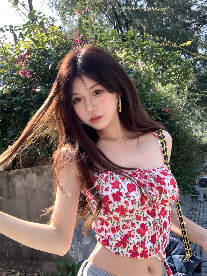 甘い花柄小さなキャミソール女性の夏の純粋な欲望セクシーな背中の開いた bm ノースリーブアウターウェアスリムショートトップ 大人ガーリー スウィート キュート カジュアル サマー 夏物 ピュア bstraw8027679117 | beaute25