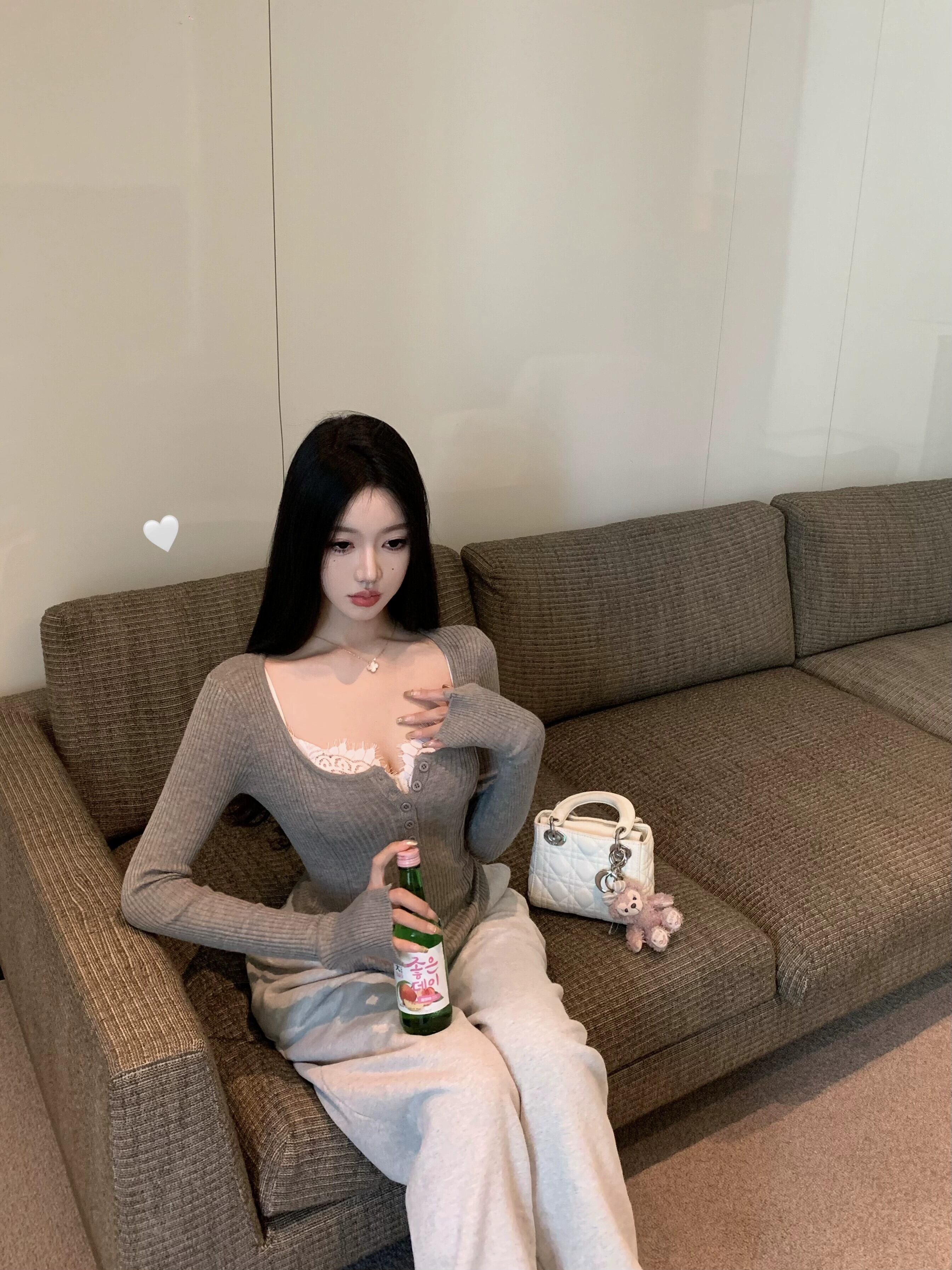 グレースリムスクエアネック長袖ニットセーター女性の春純粋な欲望タイトセータースーパー体型ボトリングトップ ロング スプリング 春物 ピュア スクウェア bstraw38251982949 | beaute25