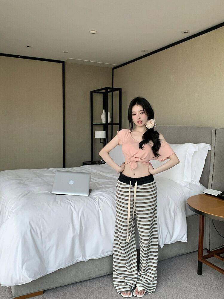 色:ピンクのTシャツ,グレーのTシャツ,ストライプパンツ