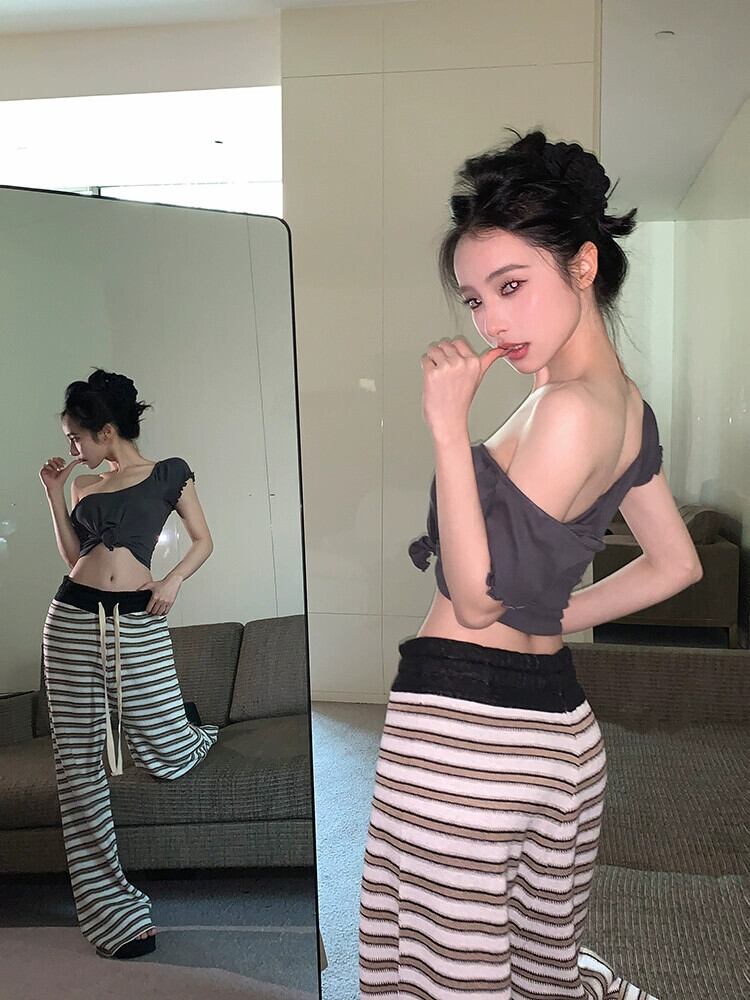 なで肩、耳裾半袖Tシャツレディース、春夏の新スタイル、スリムフィット、へそ出しショートスタイル、シンプルでシックなニッチトップ スプリング 春物 サマー 夏物 bstraw2771063200 | beaute25