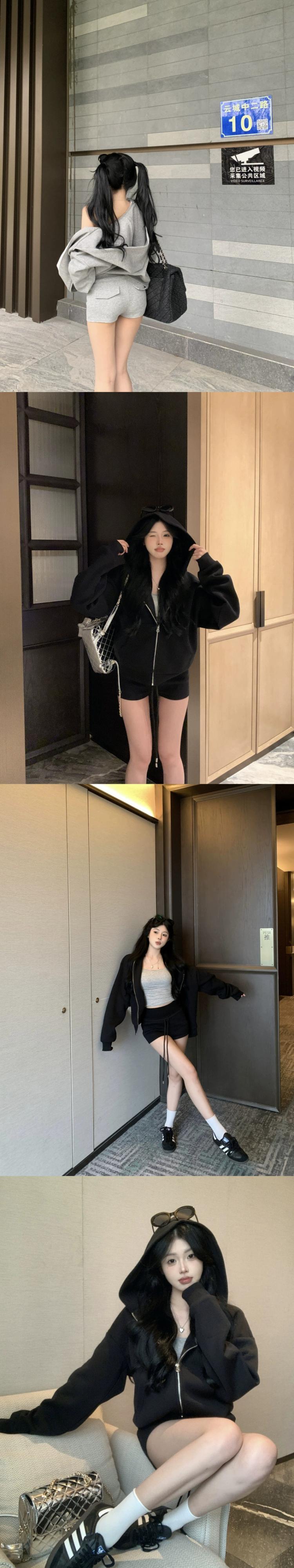 色:グレーコート,黒いジャケット,グレーのショートパンツ,黒のショートパンツ