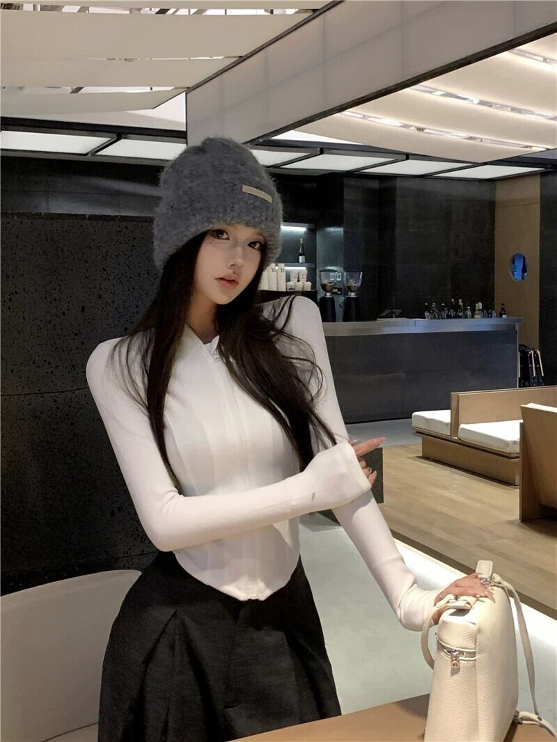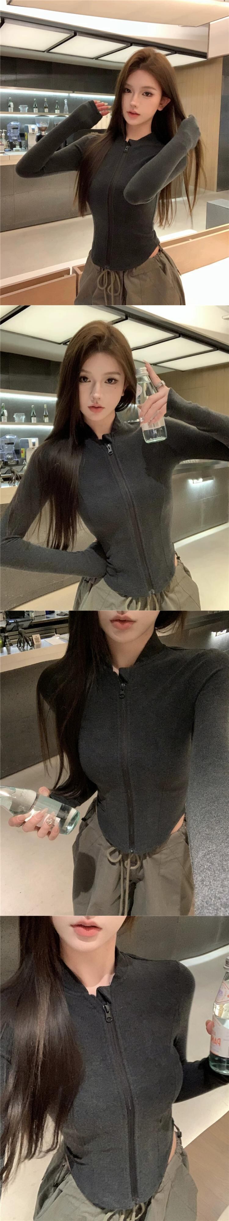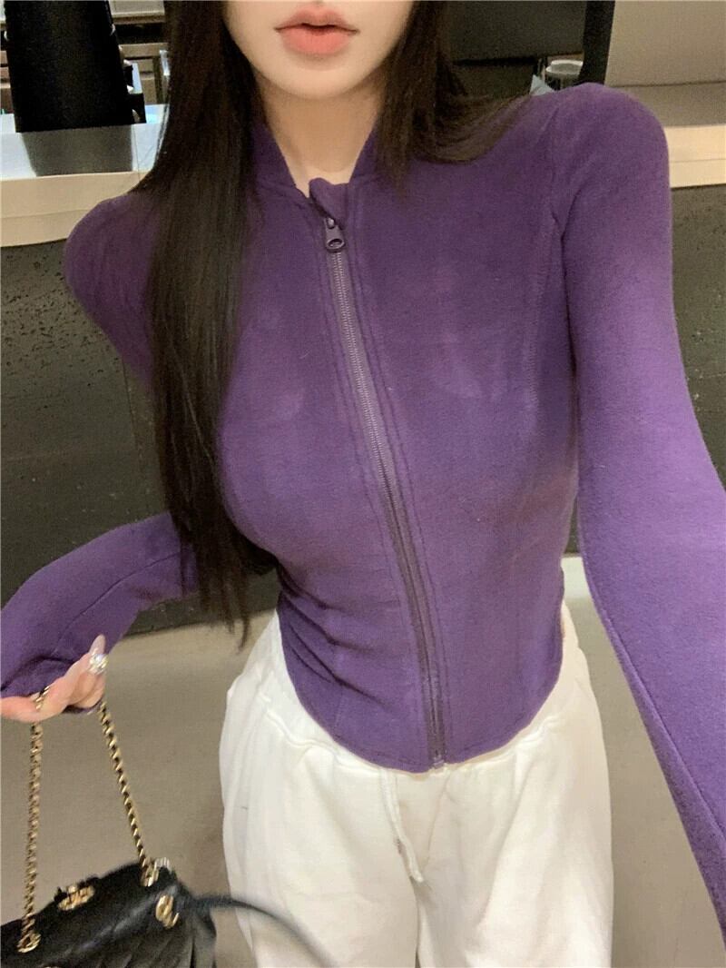 ドイツベルベットスタンドカラージッパーカーディガントップ女性春デザイン長袖Tシャツパープルスリムインナーレイヤリングシャツ ロング スプリング 春物 bstraw9737570699 | beaute25