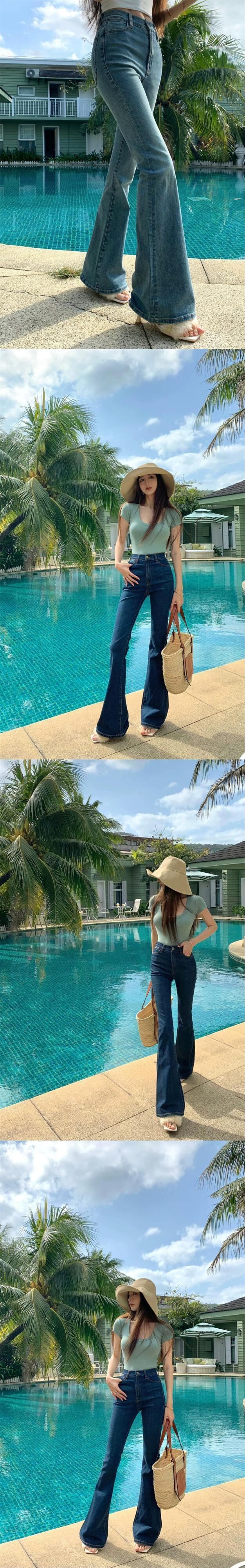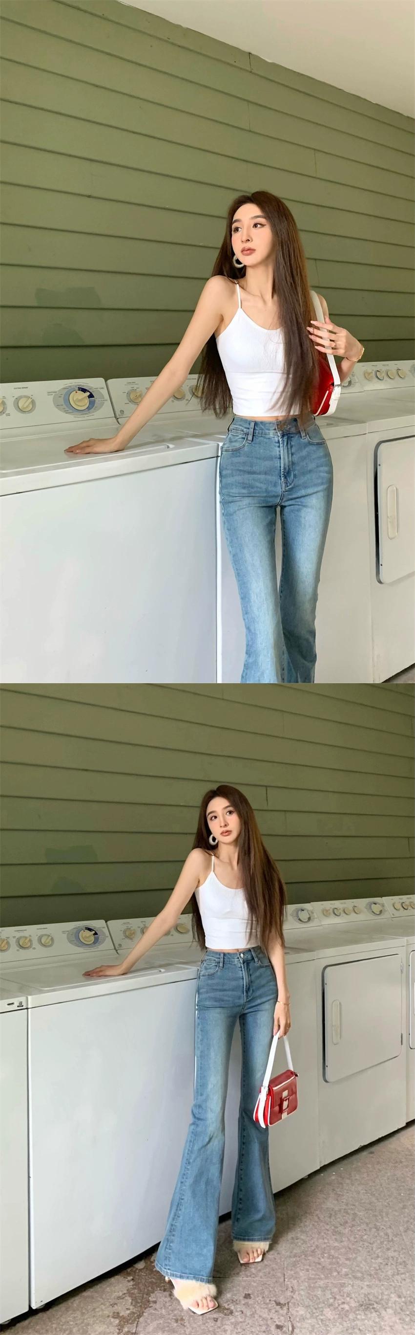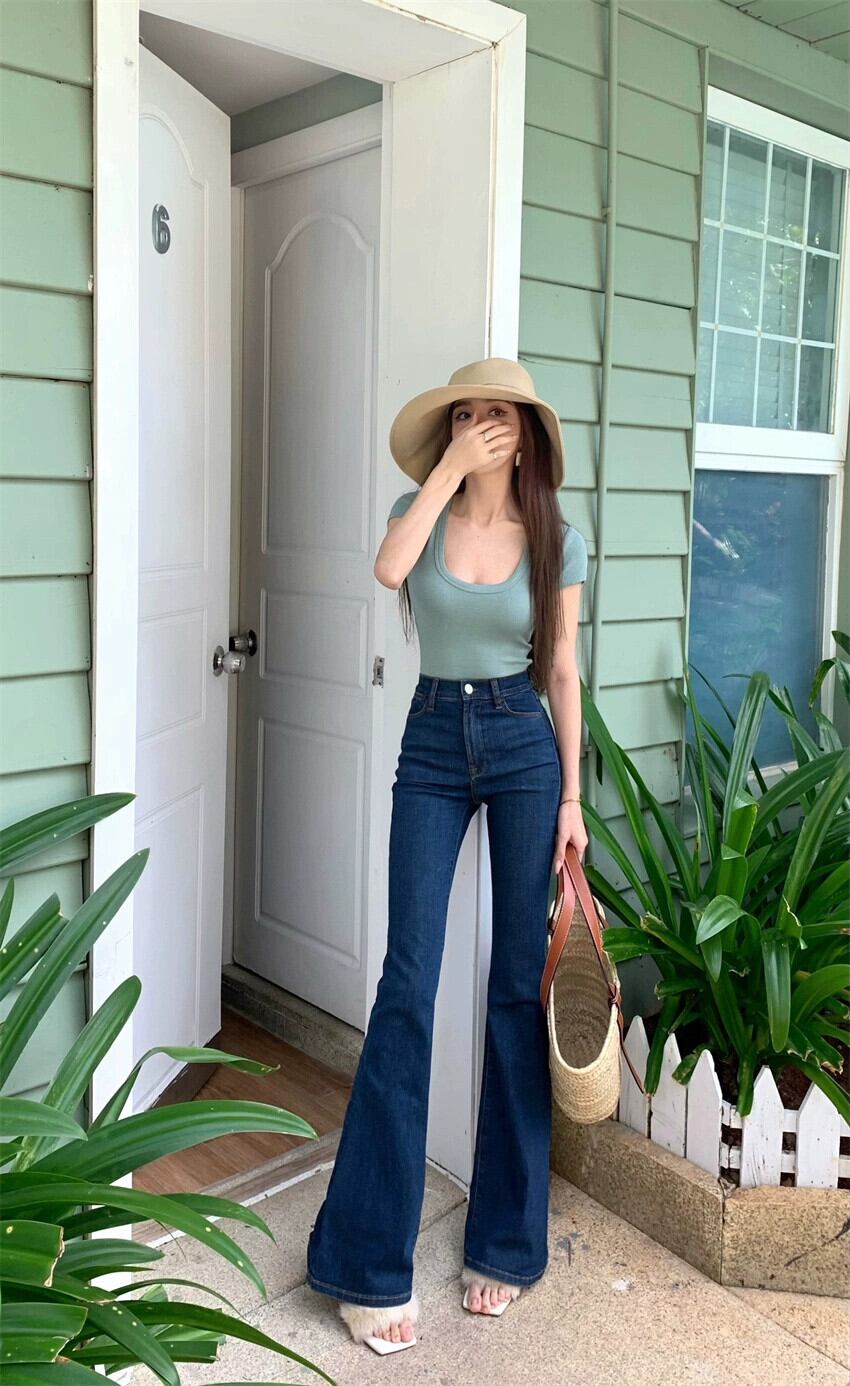 ダークレトロホースシュージーンズ女性春 2024 新しいタイトなズボンハイウエストブルーわずかにフレアパンツ ハイウェスト レッド スプリング 春物 bstraw98005798081 | beaute25