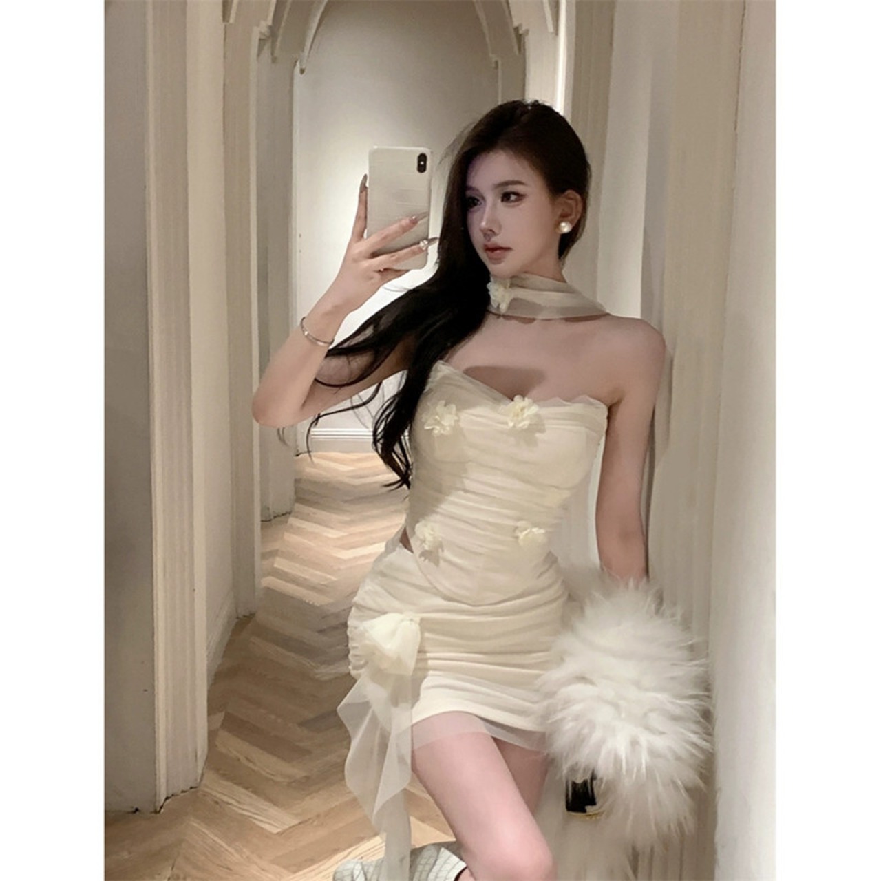 立体フラワーメッシュチューブトップ女性春純粋な欲望セクシーなスーツヒップカバーハーフレングスショートスカート2点セット スプリング 春物 ピュア フラワーデザイン bstraw77706160958 | beaute25