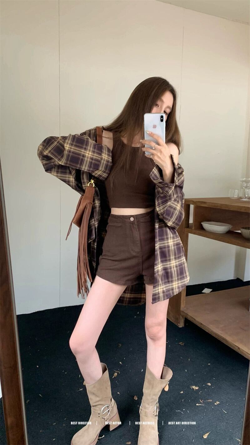 色:格子縞のシャツ,ベスト,ショートパンツ