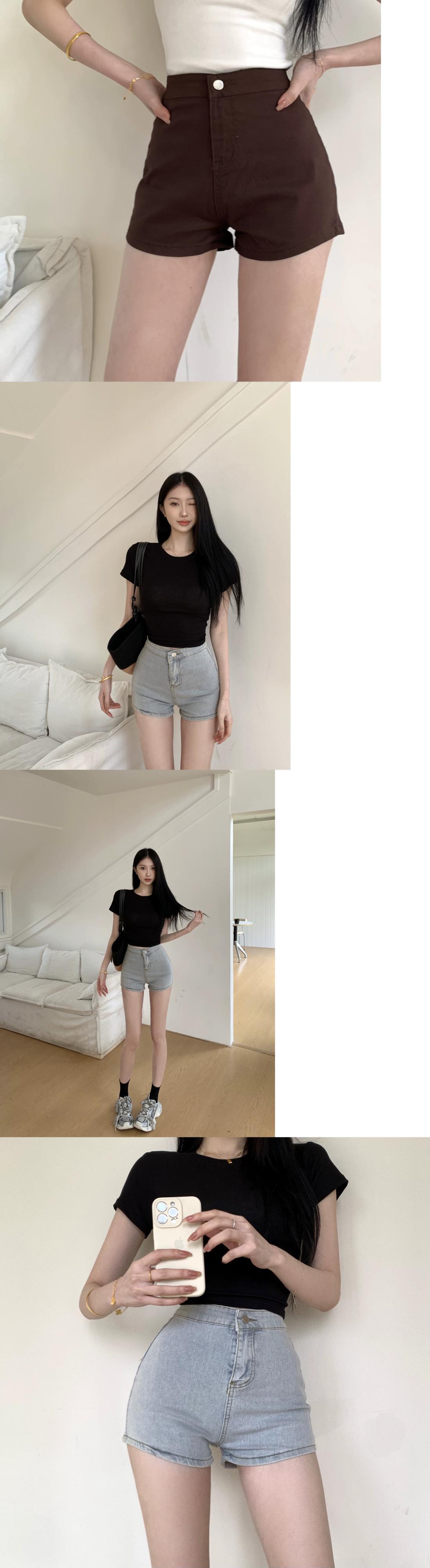 ライトブルーのデニムショートパンツレディース、夏のハイウエストストレートパンツ、タイトパンツ、小さなAラインのお尻カバーパンツ サマー 夏物 ショーツ ブルマー bstraw62076722598 | beaute25