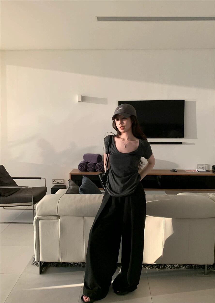 グレーの U ネック半袖 T シャツの女性 2024 夏の新しいスリムなベーシック ボトム シャツ気質とカジュアルなトップ サマー 夏物 Tシャツ bstraw71344094473 | beaute25