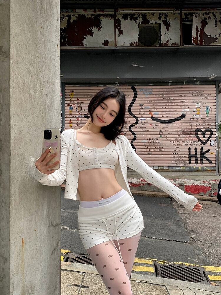 ティー系コーデ レディース 春物サスペンダー付き長袖カーディガントップ ハイウエストストレートショーツ 3点セット ロング スプリング ブルマー bstraw74641622946 | beaute25