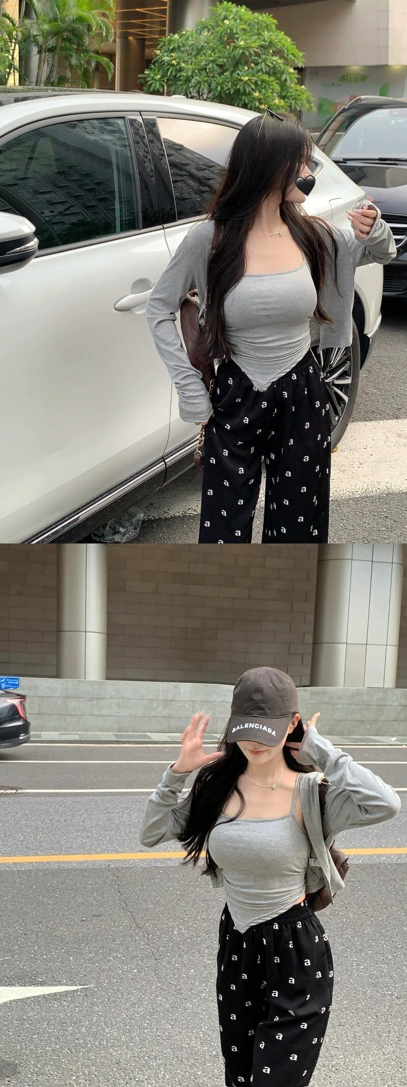 色:グレーのトップスーツ,黒のトップスーツ,レターズボン