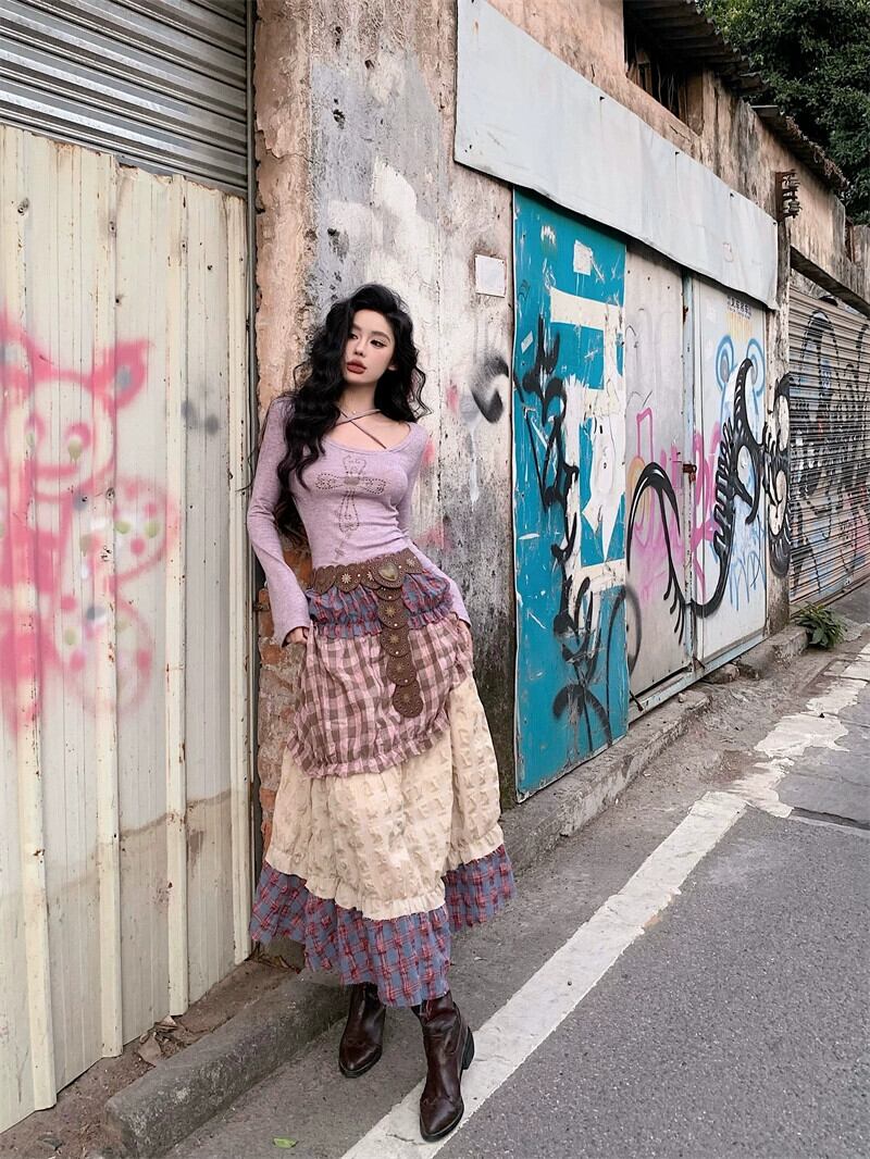 ボヘミアンスタイルスカート レディース 春 カラフルチェック柄 アンブレラスカート パッチワークスカート ハイウエスト ミドル丈 Aラインスカート ハイウェスト スプリング 春物 bstraw93876961872 | beaute25