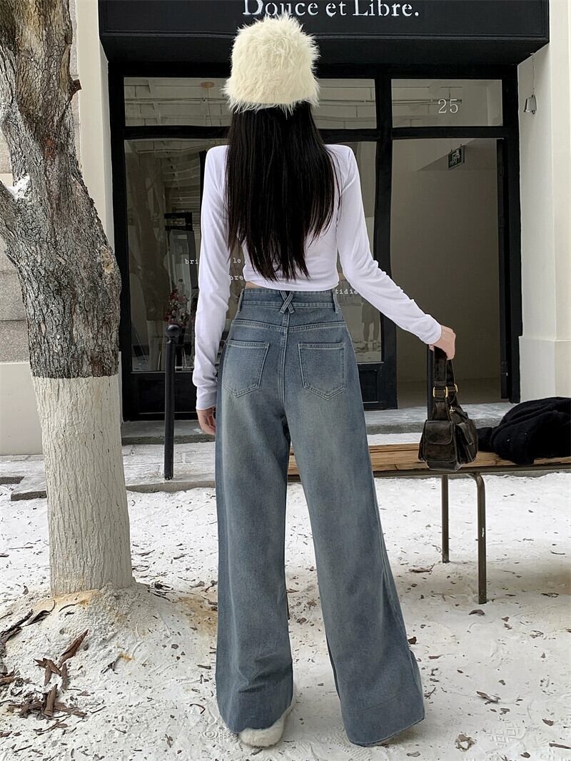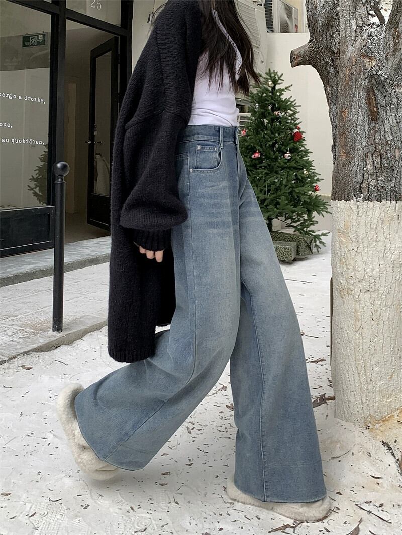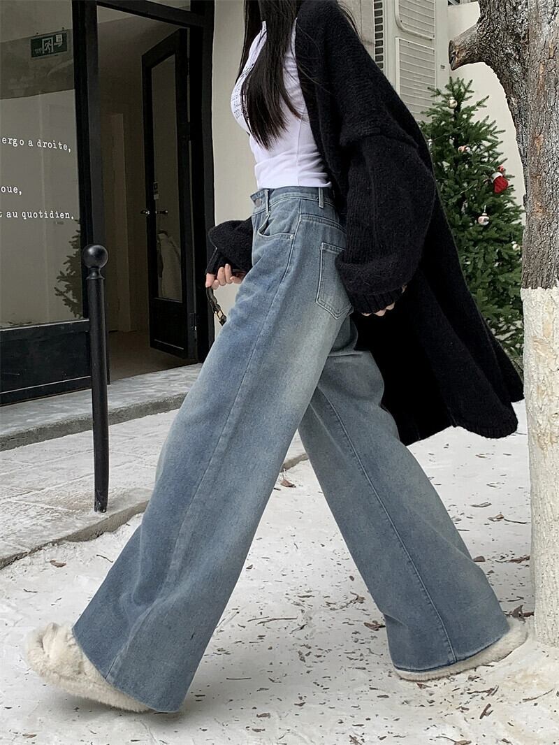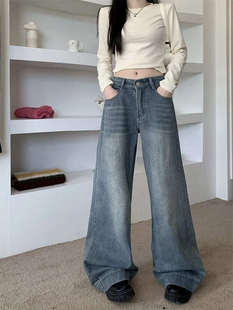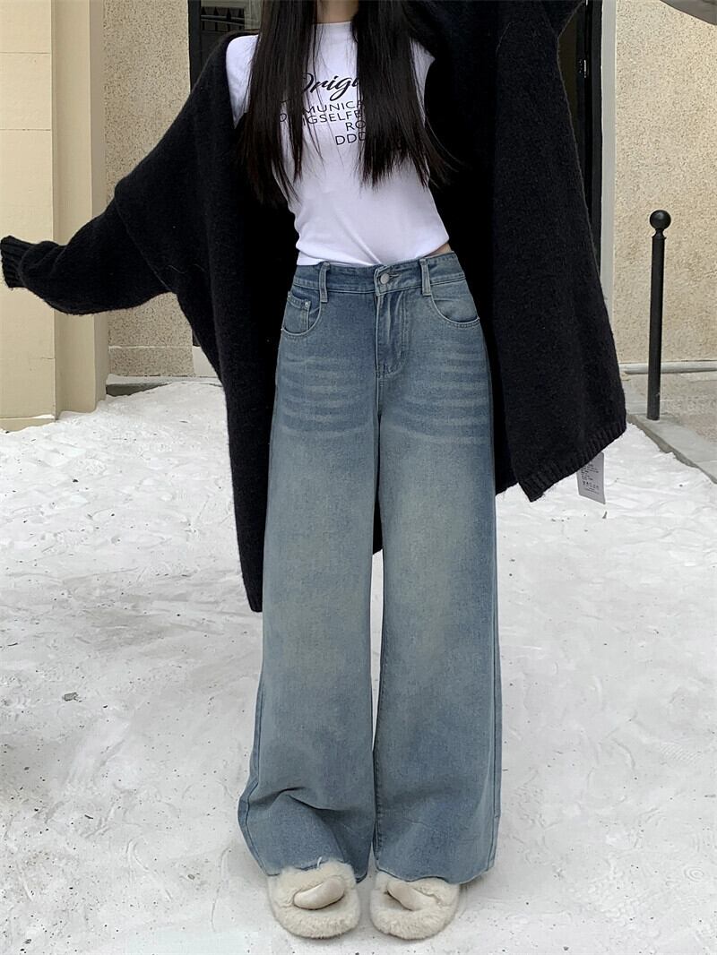 ブルー ワイドレッグ ジーンズ レディース 春 アメリカン レトロ 小さい ローウエスト ルーズ ストレート パンツ フロアレングス ズボン スプリング 春物 bstraw48200809716 | beaute25