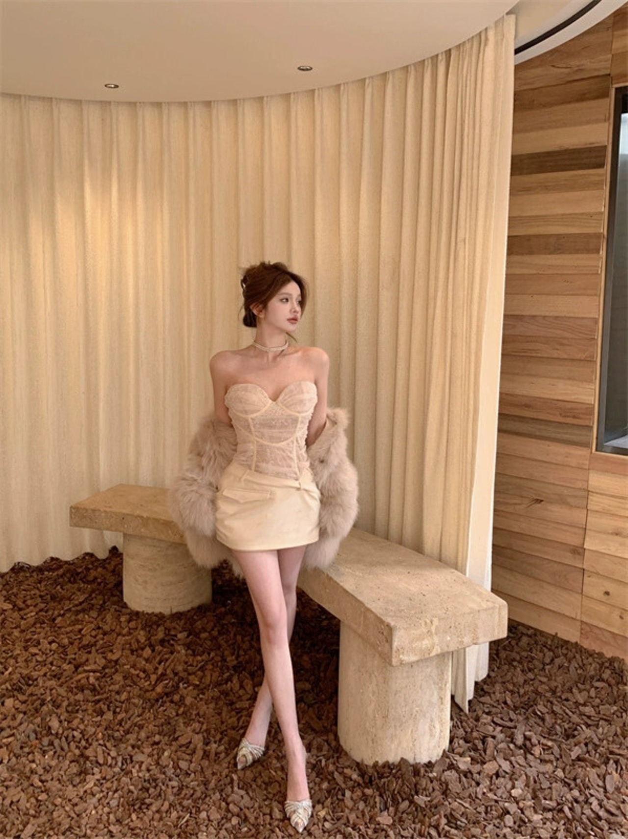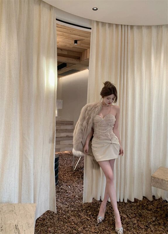 レースメッシュステッチコントラストカラーチューブトップドレス女性春セクシーな純粋な欲望スタイルタイトなインナーウェアショートスカート付きヒップカバー スプリング 春物 ピュア bstraw20831964394 | beaute25