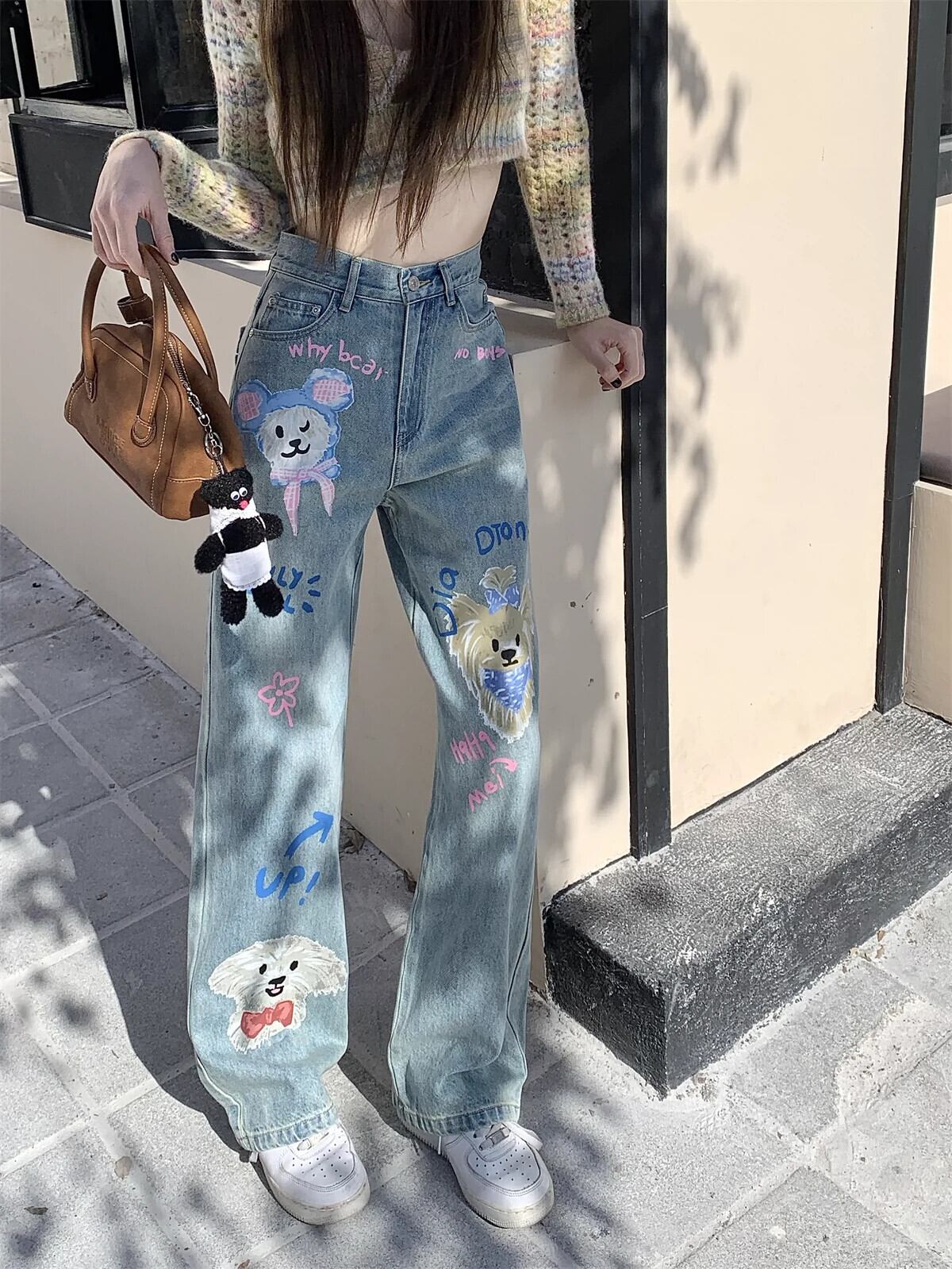 漫画落書きプリントワイドレッグジーンズ女性春ルーズハイウエストスリムストレートパンツカジュアルフロアモップパンツ ハイウェスト スプリング 春物 ワイドパンツ bstraw62331726830 | beaute25