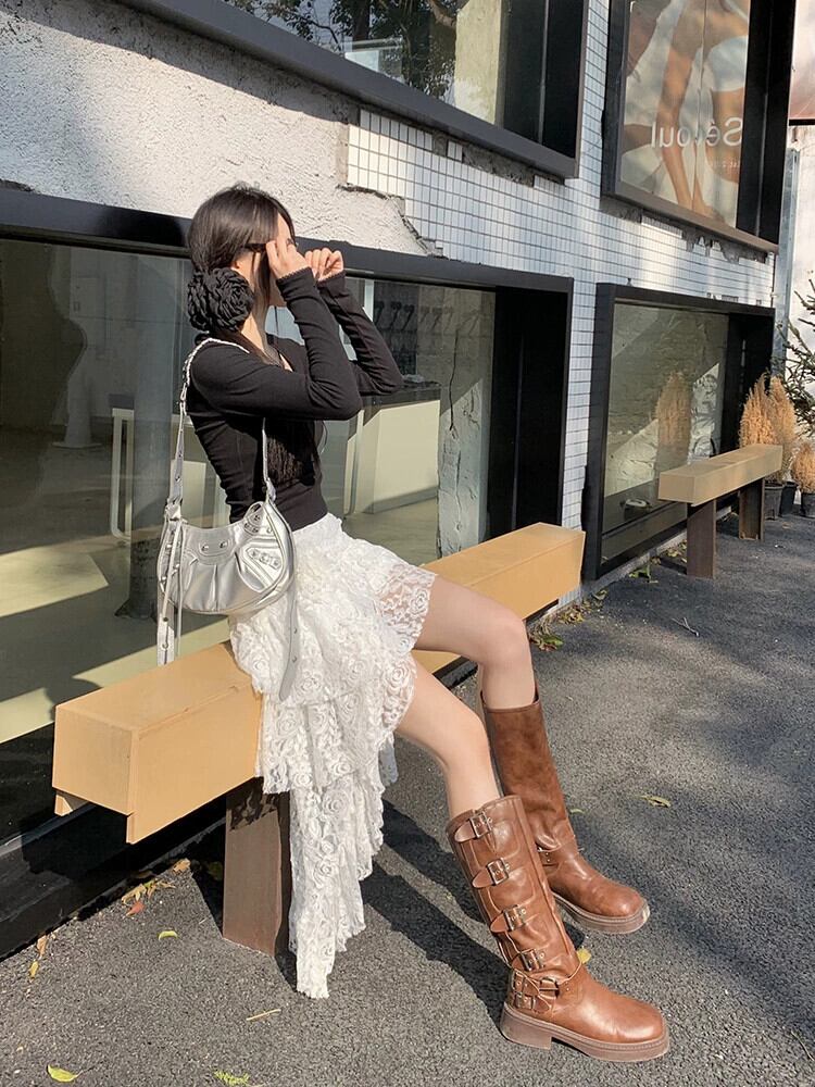 春の不規則なレースのスカートの女性、小さい、ハイウエスト、白い A ラインのケーキショート スカート、露出防止キュロット ホワイト スプリング 春物 Aライン bstraw66994353688 | beaute25