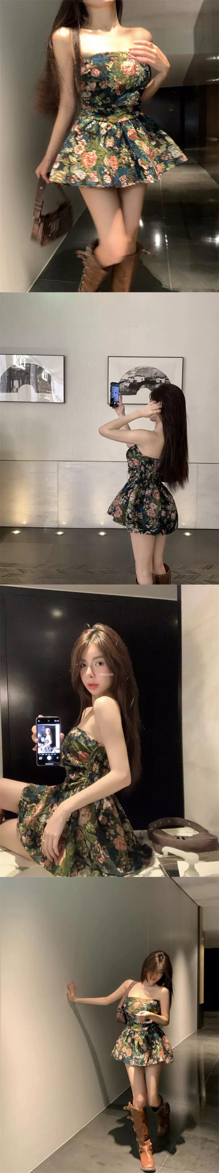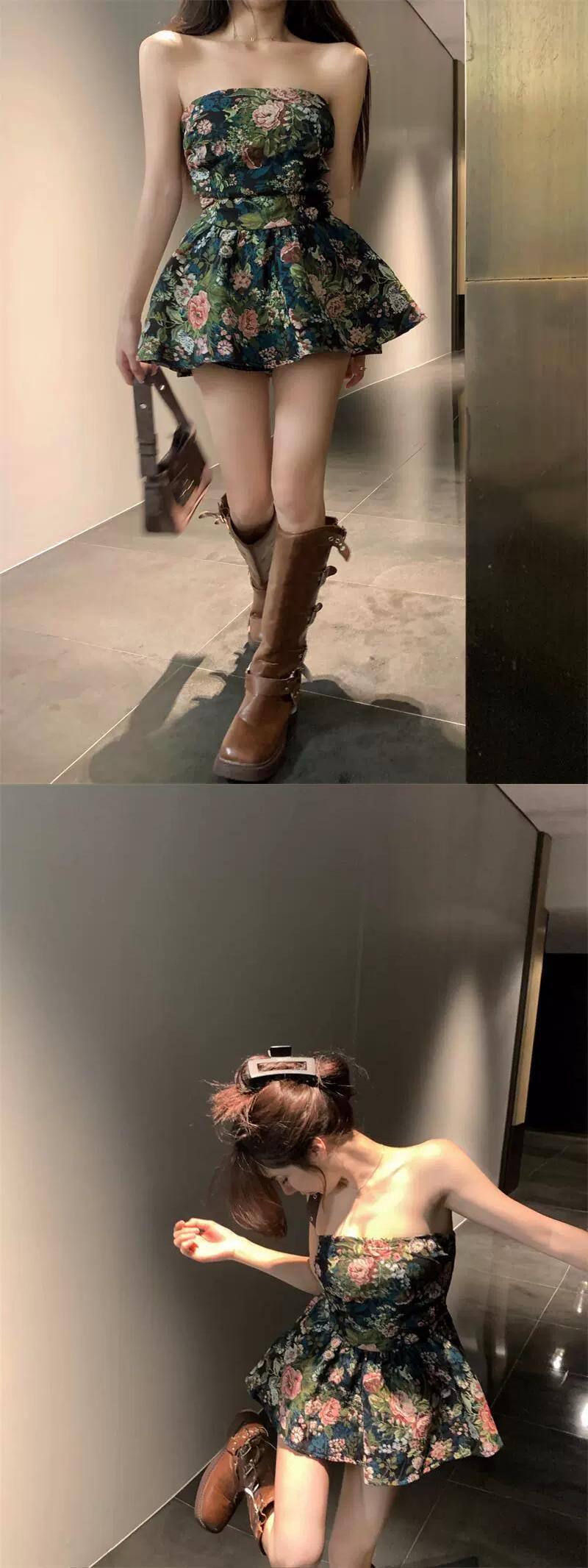 ホットレトロ花柄チューブトップドレス女性の夏のウエストスカート露出防止キュロット A ラインチュチュスカート サマー 夏物 Aライン パニエ ペチコート berry14697416499 | beaute25