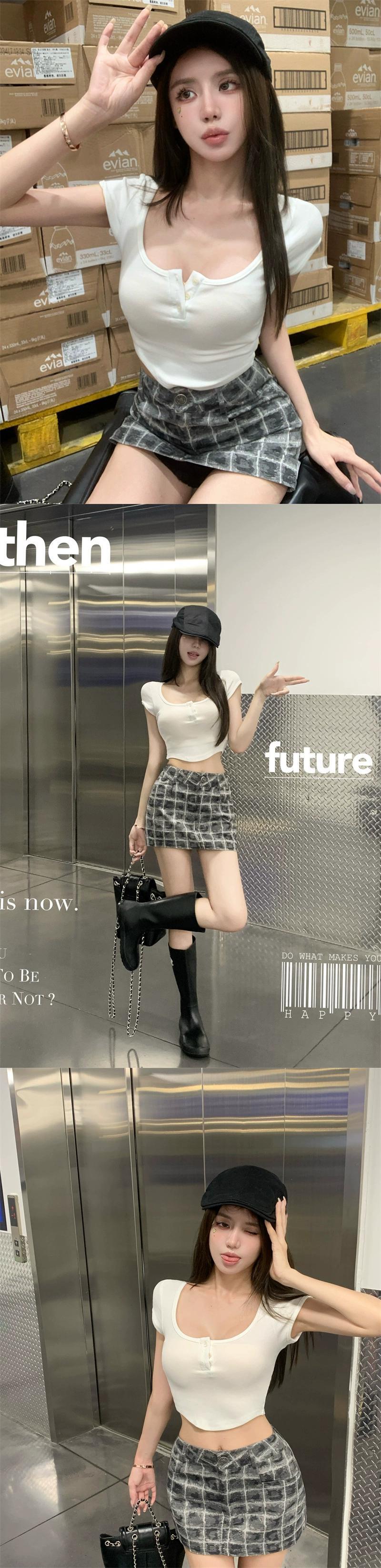 純粋な欲望ホットガールブラックスクエアネック半袖 Tシャツ女性の夏スリムスリムセクシーなショート不規則なウエストトップ ハーフスリーブ サマー 夏物 スクウェア berry43145443167 | beaute25