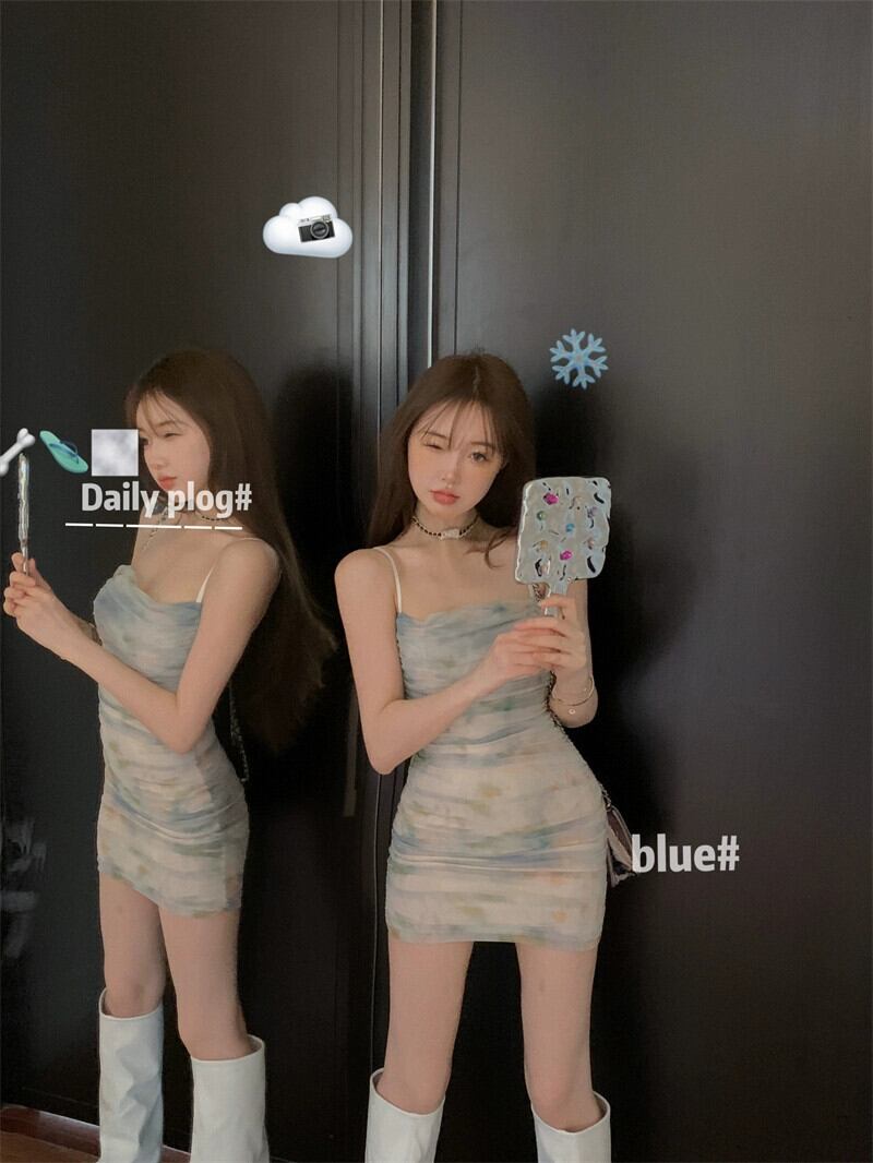 純粋な欲望メッシュサスペンダードレス女性の夏のスリムウエストスカートプリントタイトホットガールセクシーなヒップカバーショートスカート サマー 夏物 berry72233772720 | beaute25