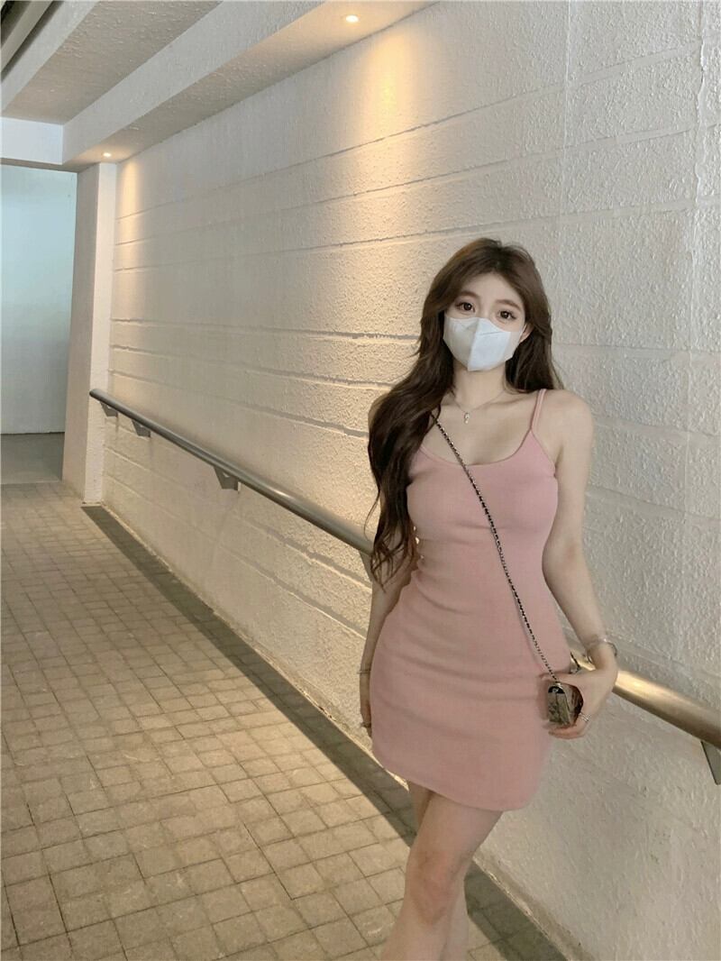 ホットフレンチピンクサスペンダードレス女性の夏の純粋な欲望気質スカートウエストセクシーなヒップカバースカートロングスカート サマー 夏物 ピュア berry58253948013 | beaute25