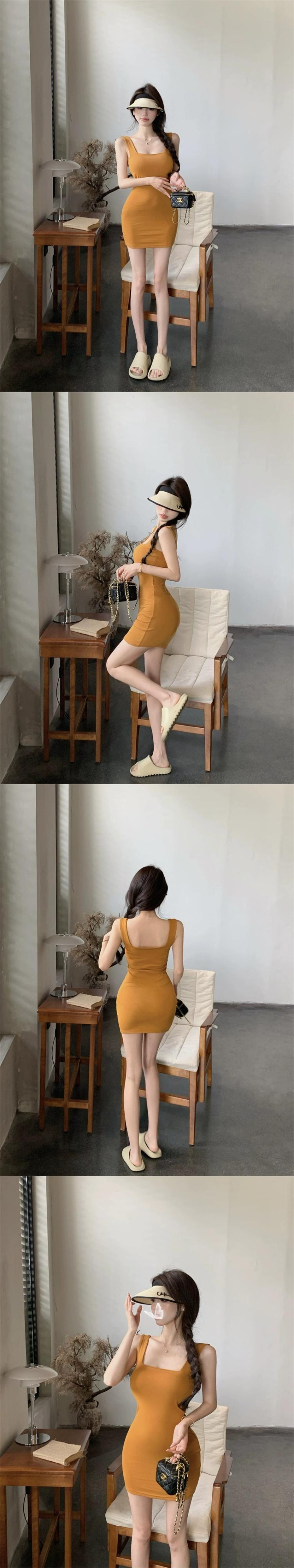 黄色のワイドショルダーストラップサスペンダードレス女性の夏のセクシーなタイトヒップショートスカートスクエアネックプチスカート サマー 夏物 スクウェア berry12054682613 | beaute25
