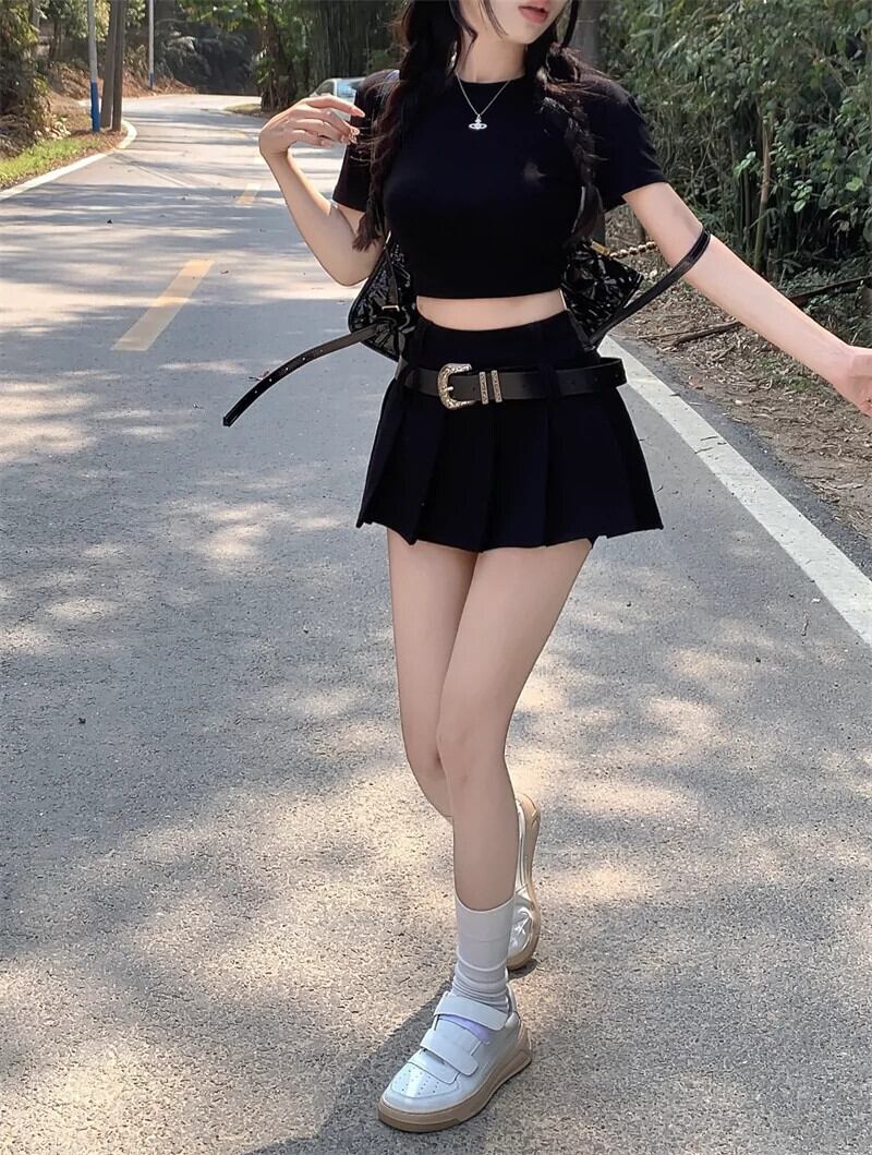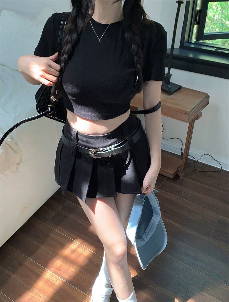 色:白いTシャツ,黒いTシャツ,白いスカート,黒スカート