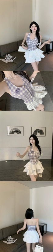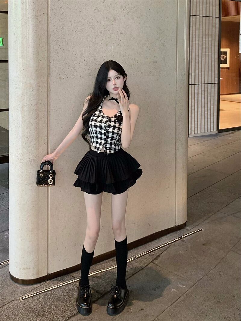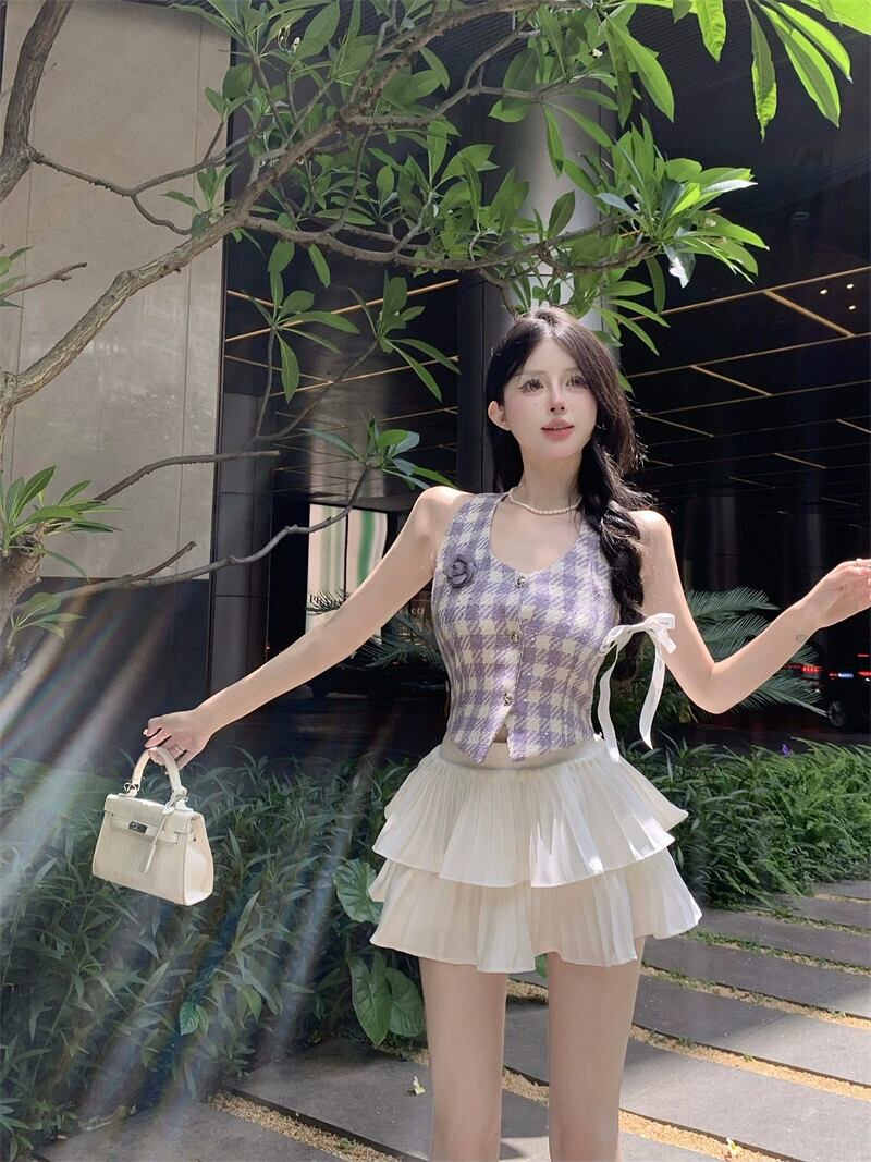 小さな香りのよいスタイルスーツ甘いネクタイホルターネックキャミソールトップ女性の夏の気質スカートふくらんスカートスカート 大人ガーリー スウィート キュート カジュアル サマー 夏物 berry61287743402 | beaute25