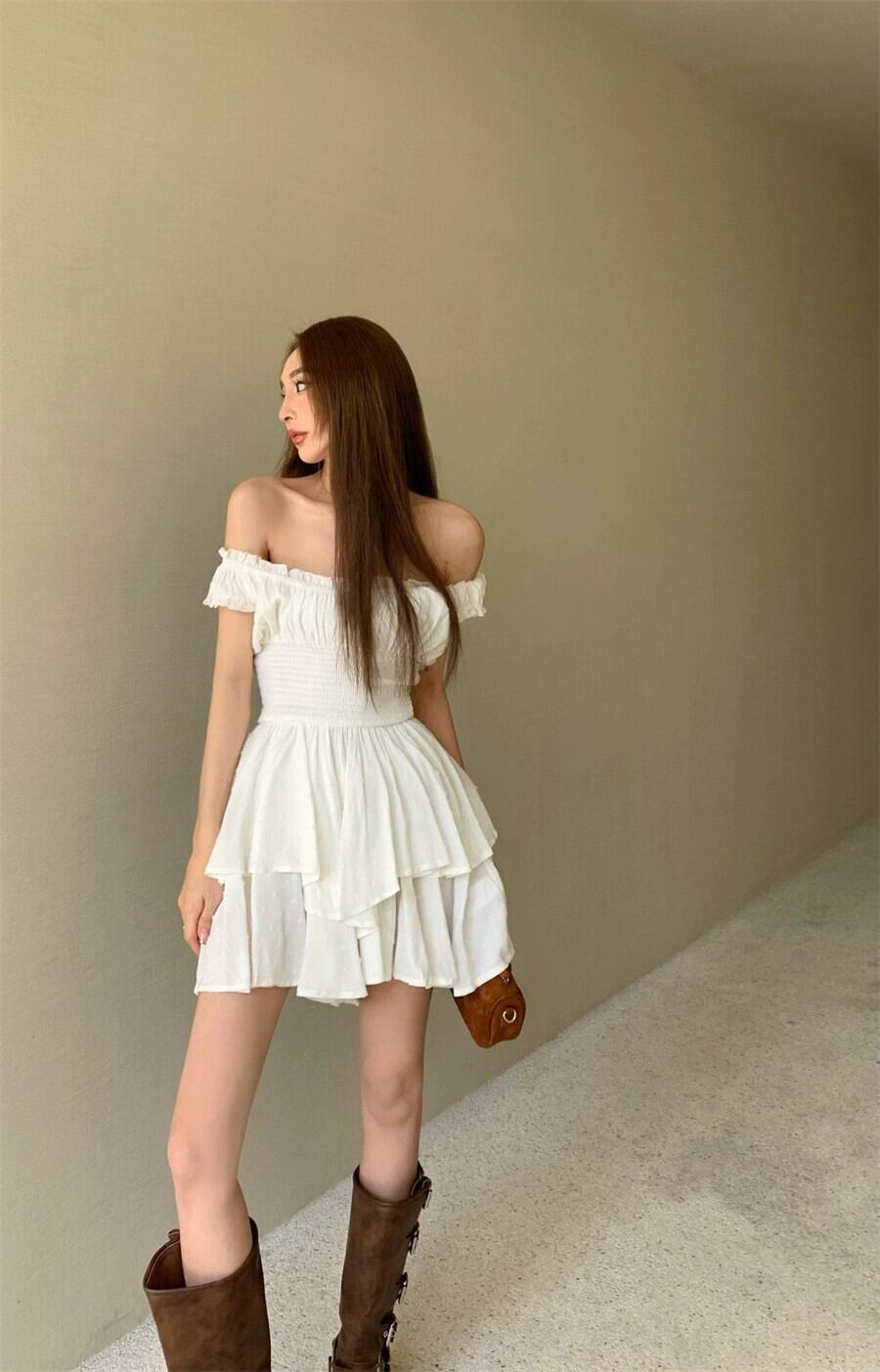 白いワンショルダー半袖ベストドレス女性夏の甘いネクタイプリーツ中空aラインスカート気質スカート ホワイト 大人ガーリー スウィート キュート カジュアル サマー 夏物 berry84786833642 | beaute25