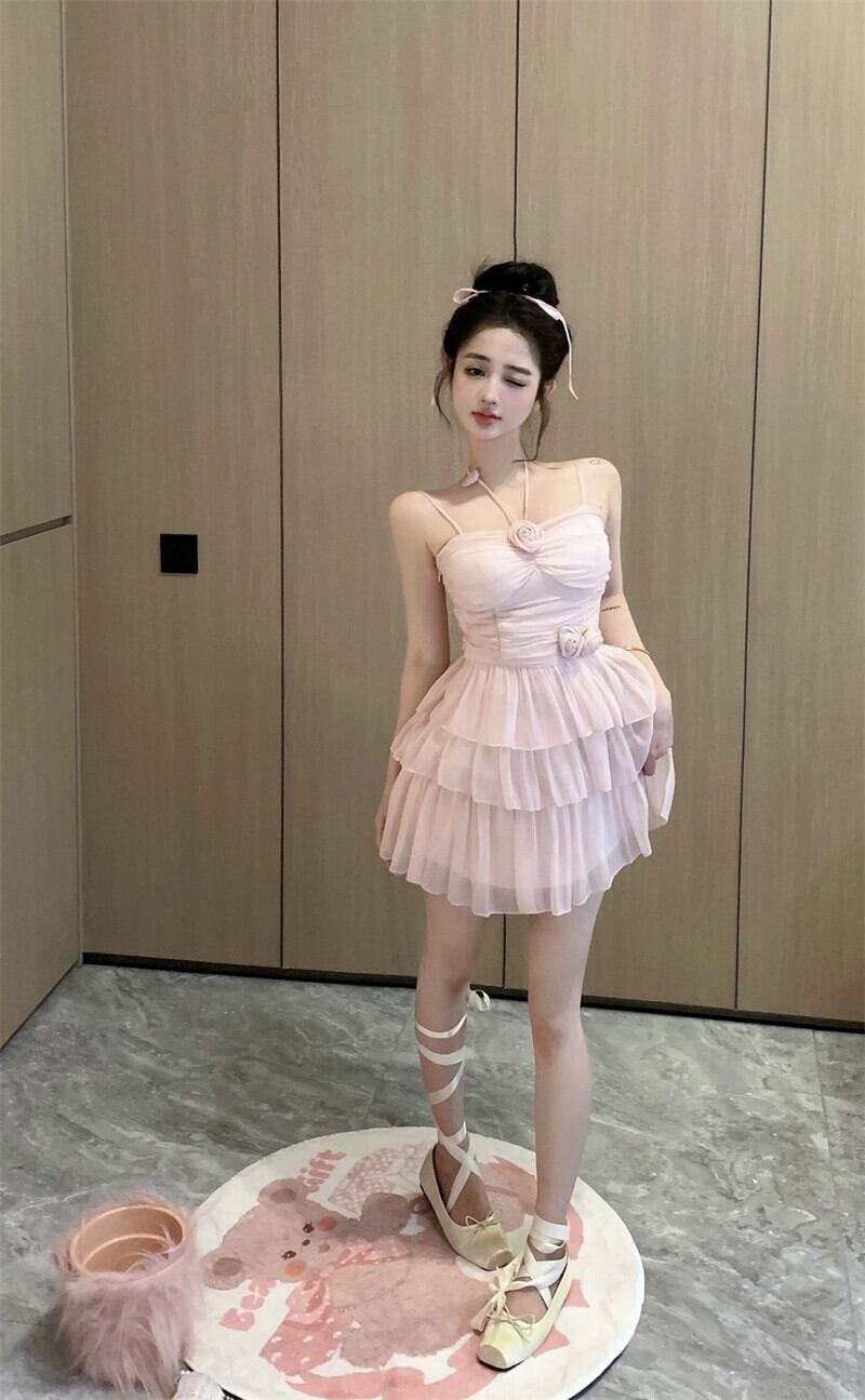 純粋な欲望サスペンダーホルターネックドレス女性夏の甘いネクタイ重工業フラワースカート気質フリルケーキスカート 大人ガーリー スウィート キュート カジュアル サマー 夏物 フラワーデザイン berry39148163427 | beaute25