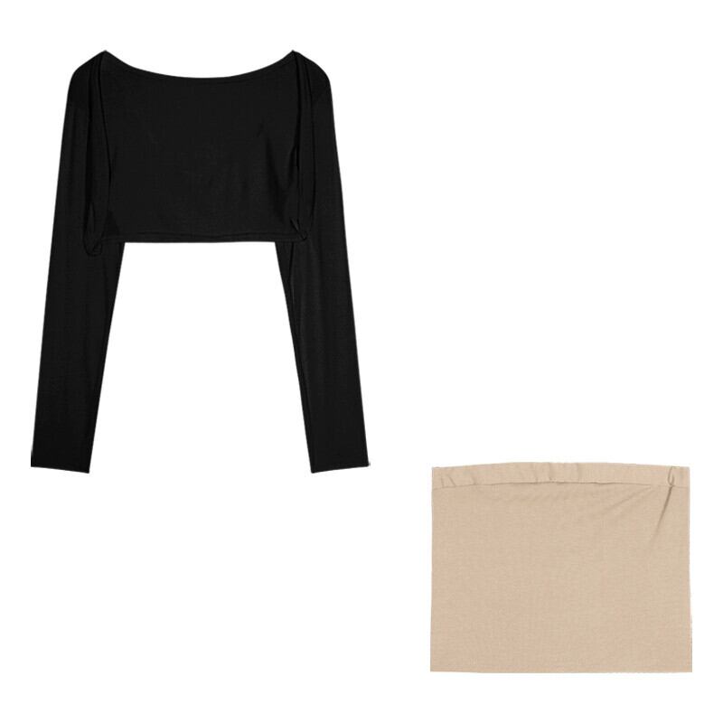 春の黒のニット カーディガンの女性、ショール付きの小さな長袖日焼け止めブラウス、ショート コート、チョッキ トップ ロング ブラック スプリング 春物 berry13097256894 | beaute25