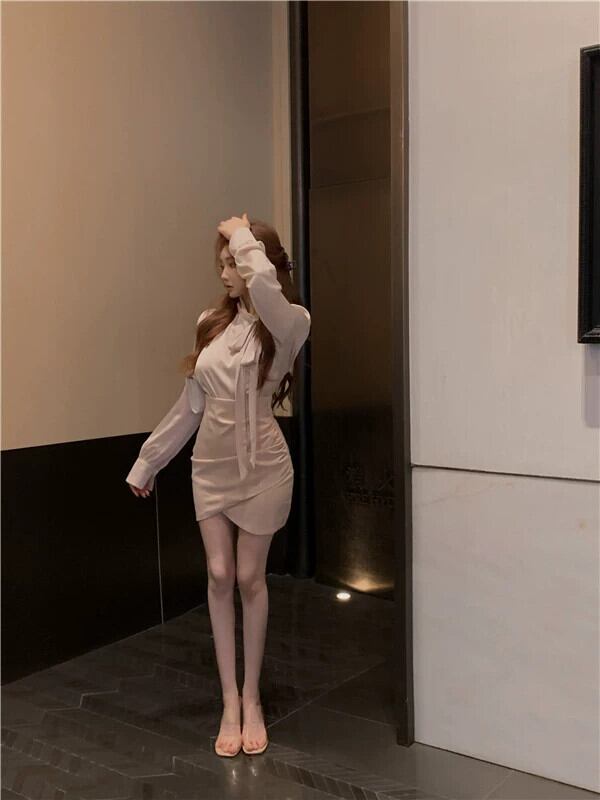 気質ロイヤルシスタースタイルスーツピンクレースアップ長袖サテンシャツレディース春ヒップ抱きスカートショートスカート2点セット ロング スプリング 春物 berry39815371016 | beaute25