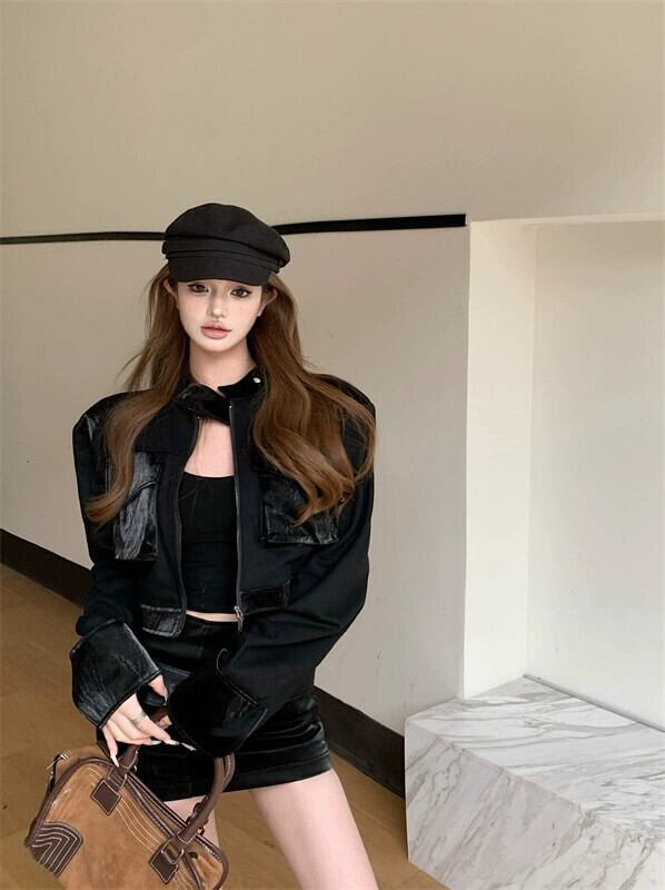 黒の長袖アウターショートコートレディース秋冬甘くてクールなスーツハイウエストタイトヒップ抱きショートスカート2点セット ロング ブラック 大人ガーリー スウィート キュート カジュアル オータム 秋物 ウィンター 冬物 berry63754697406 | beaute25