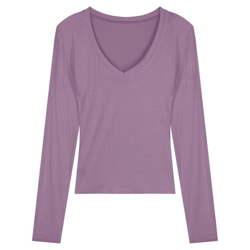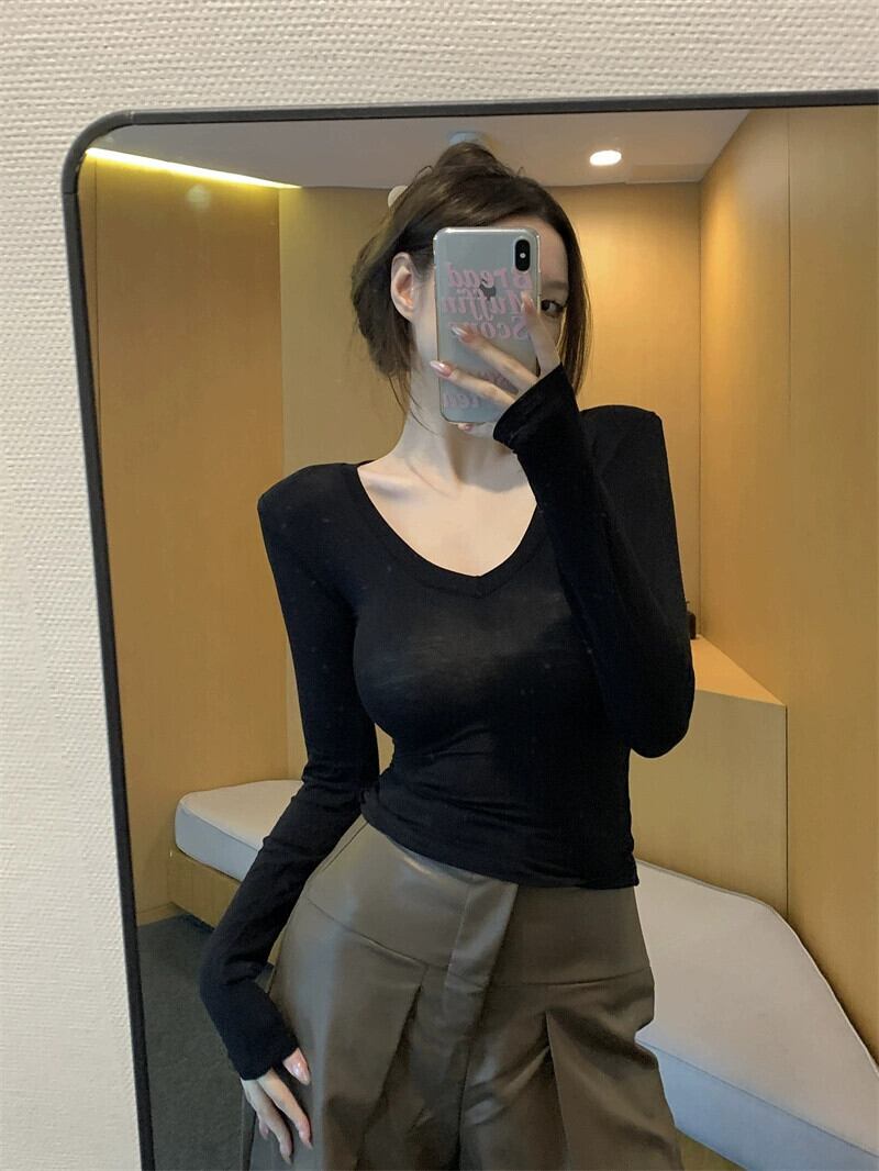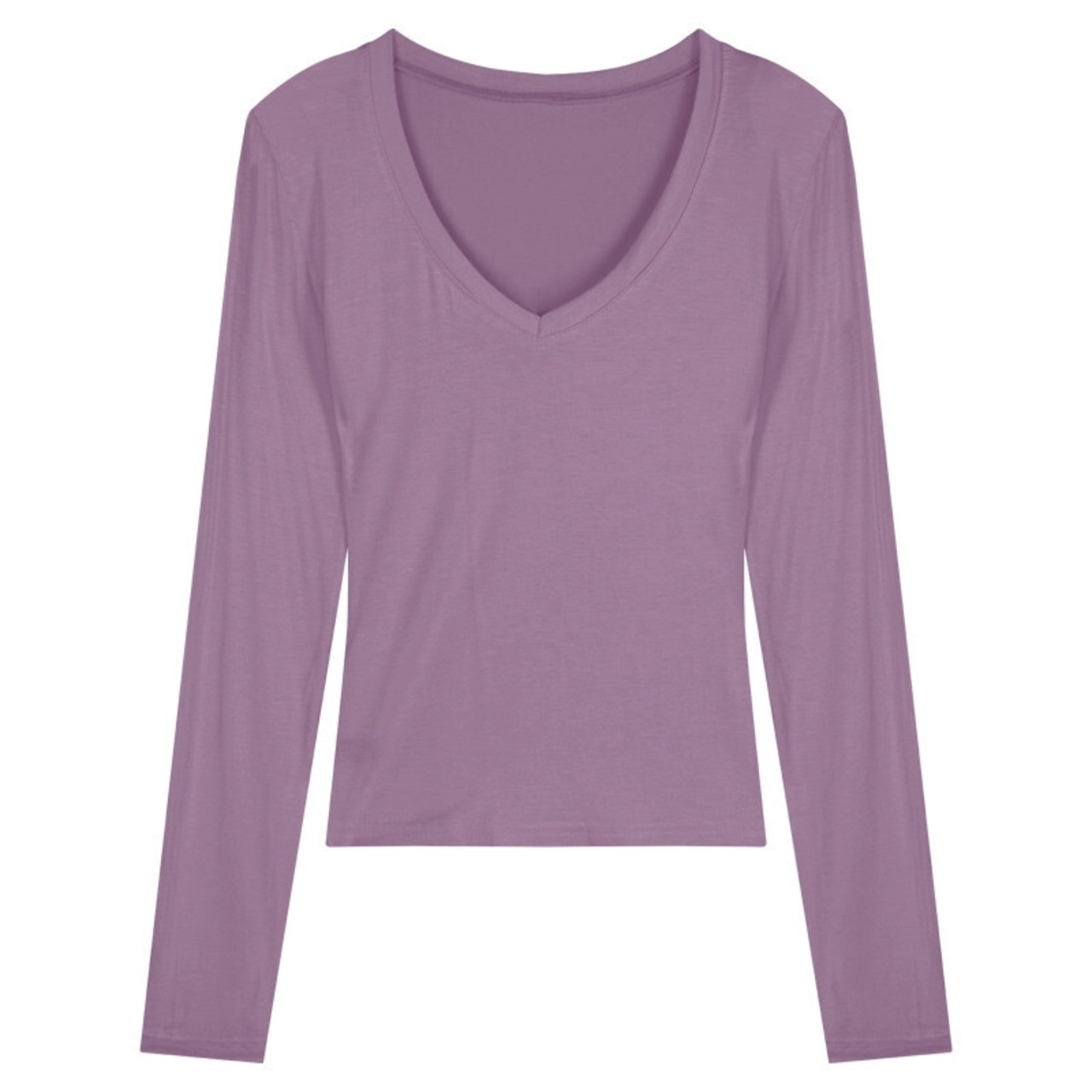 紫色の V ネック長袖肩パッド入り Tシャツ女性春の純粋な欲望スタイルのセクシーなスリムタイトなショートインナーボトリングシャツトップ ロング スプリング 春物 Vネック ピュア パープル berry7898848467 | beaute25