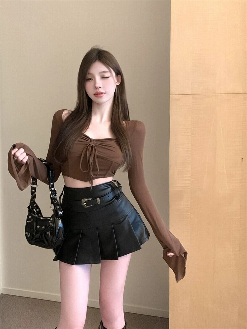 Pu レザースカートプリーツスカート女性の春の新作ハイウエストスリム黒スカートプチ A ラインショートスカート ブラック スプリング 春物 Aライン berry24926055898 | beaute25