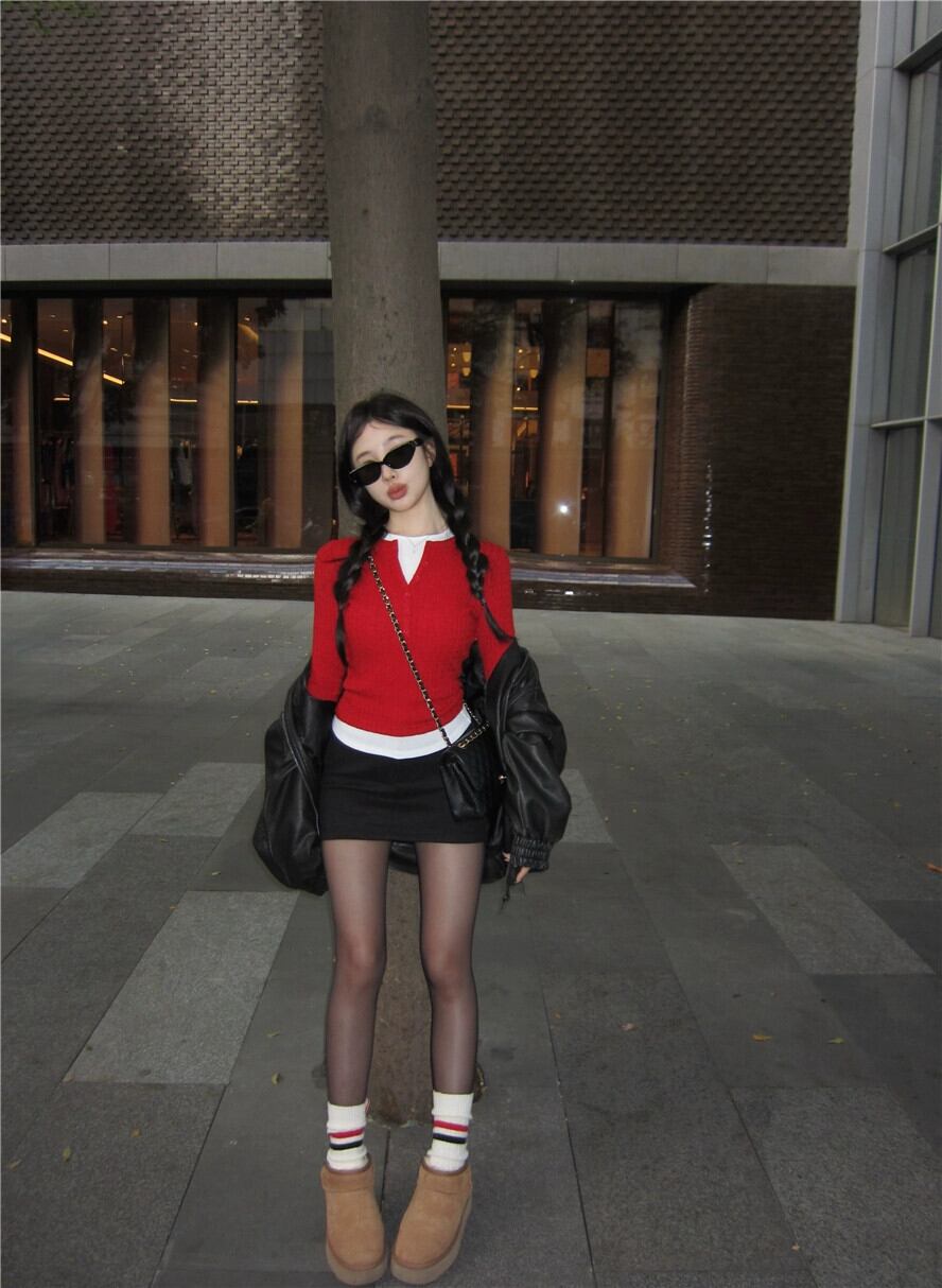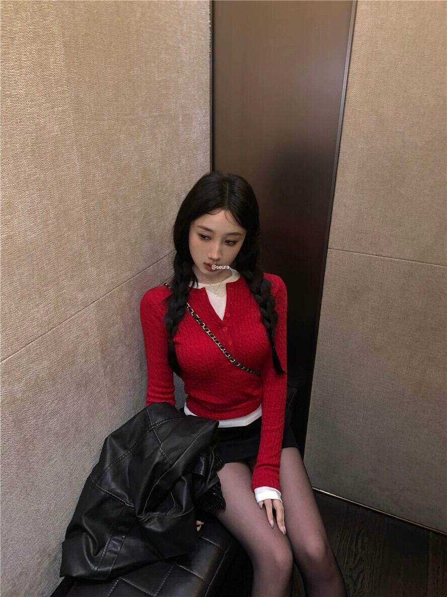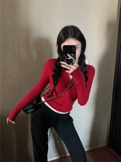 レッドツイスト長袖セーター女性春レトロショートスリムフィット甘いインナーセーターボトミングトップ ロング 大人ガーリー スウィート キュート カジュアル スプリング 春物 berry92733842410 | beaute25