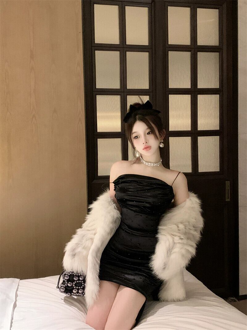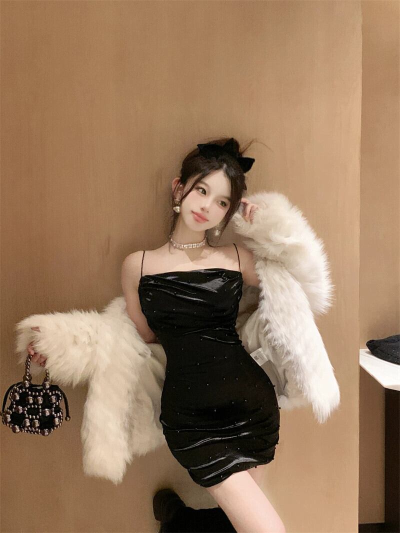 重工業パールベルベットサスペンダードレス女性の夏レッド純粋な欲望セクシーなスカートウエストタイトヒップハグショートスカート サマー 夏物 ピュア 真珠 berry53479038229 | beaute25