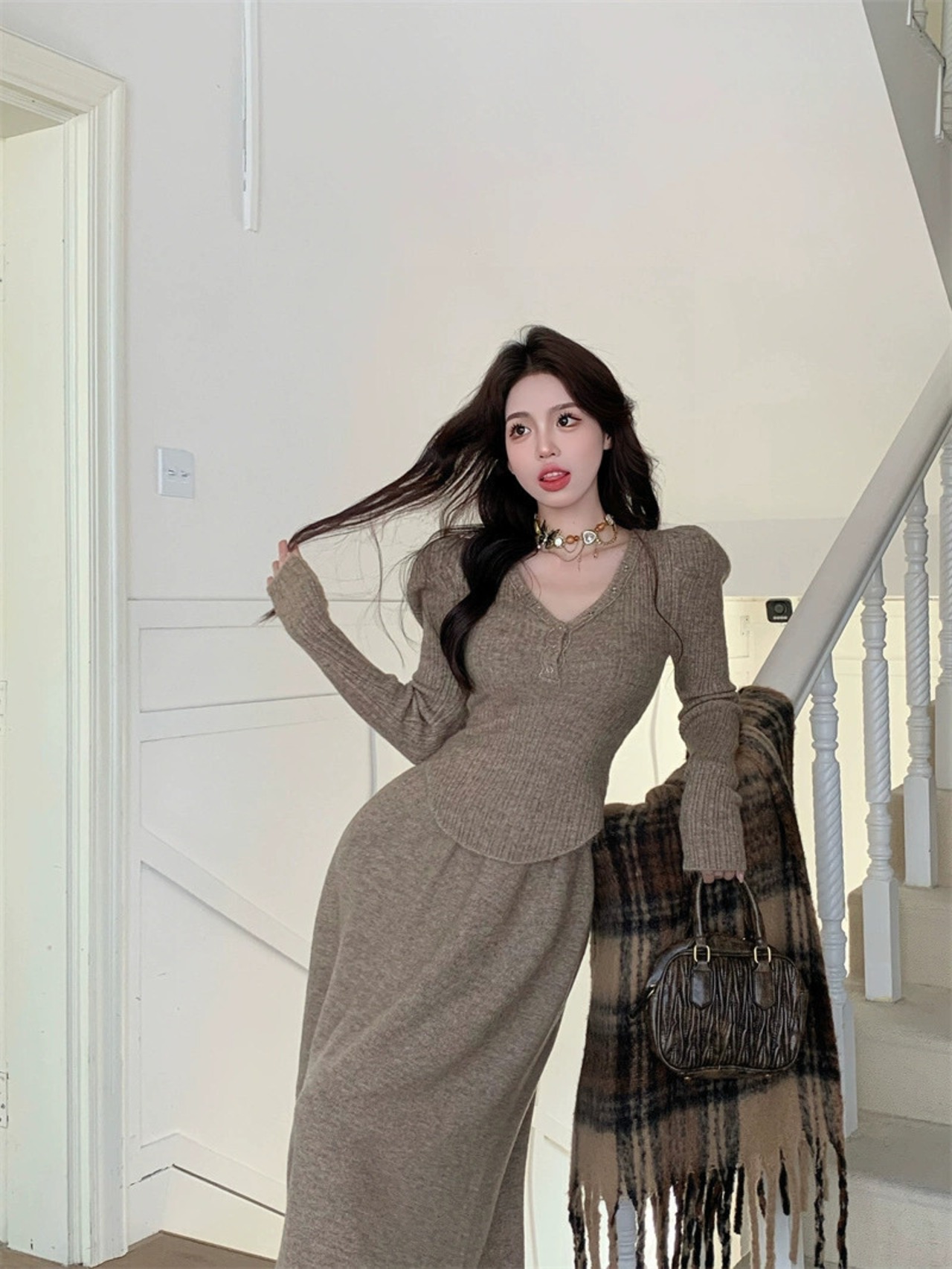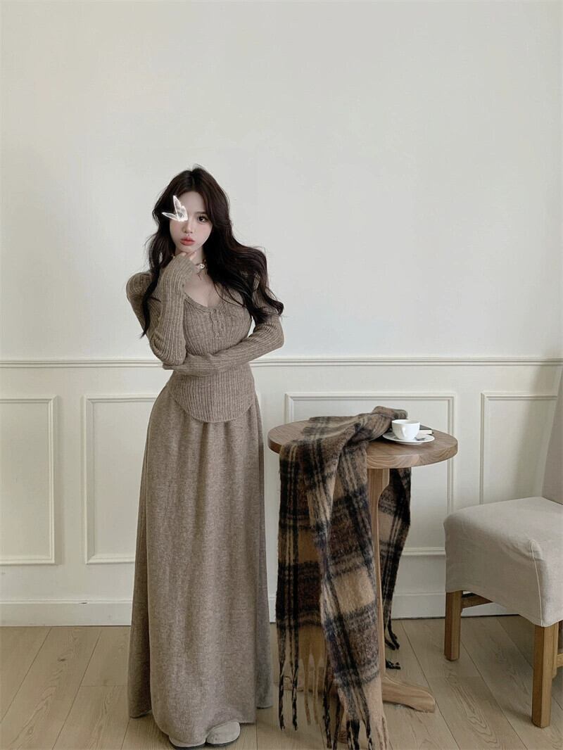 色:カーキトップ,カーキ色のスカート,アプリコットトップ,アプリコットスカート